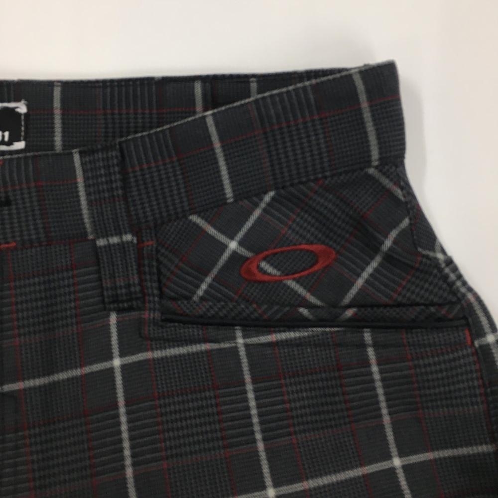 【超美品】オークリー パンツ グレー×レッド グレンチェック ティー装着可 ストレッチ メンズ 31 ゴルフウェア Oakley