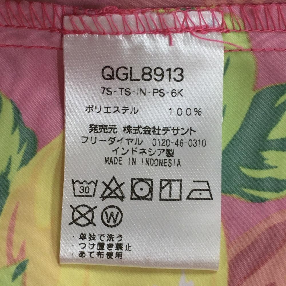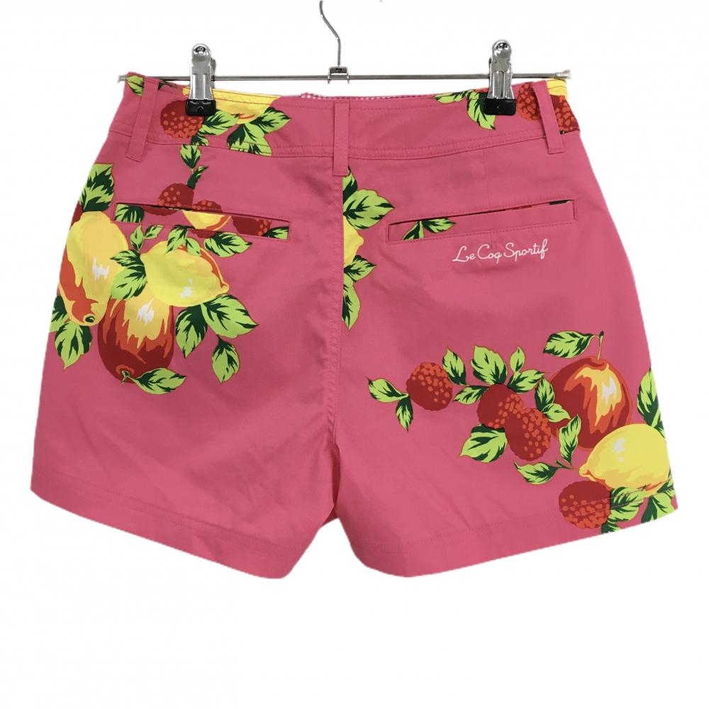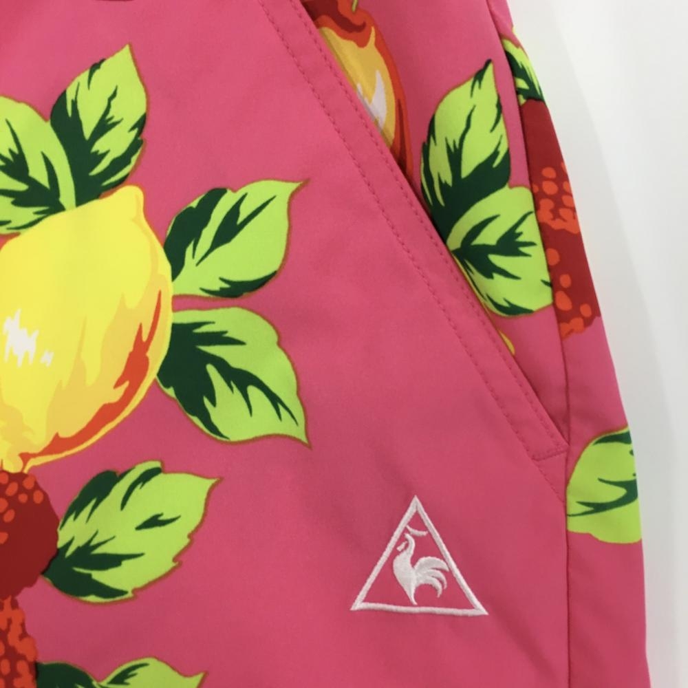 【超美品】ルコックゴルフ ショートパンツ ピンク×イエロー 果実柄 ロゴ刺しゅう レディース 11(L) ゴルフウェア le coq sportif