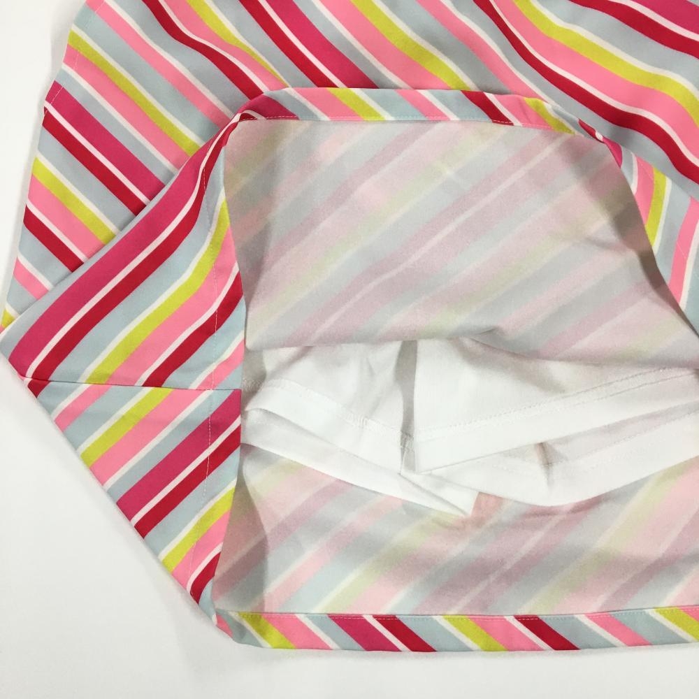【新品】キスオンザグリーン スカート ピンク×ライムイエロー系 斜めストライプ レディース 2(M) ゴルフウェア kiss on the green