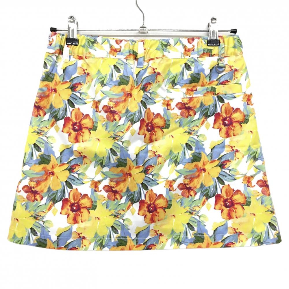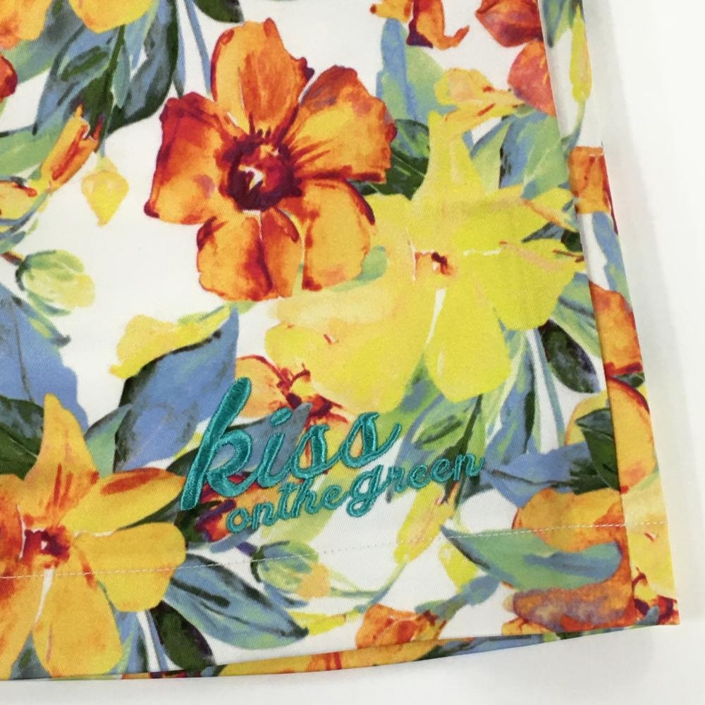 【新品】キスオンザグリーン スカート 白×イエロー 花柄 内側インナーパンツ レディース 2(M) ゴルフウェア kiss on the green