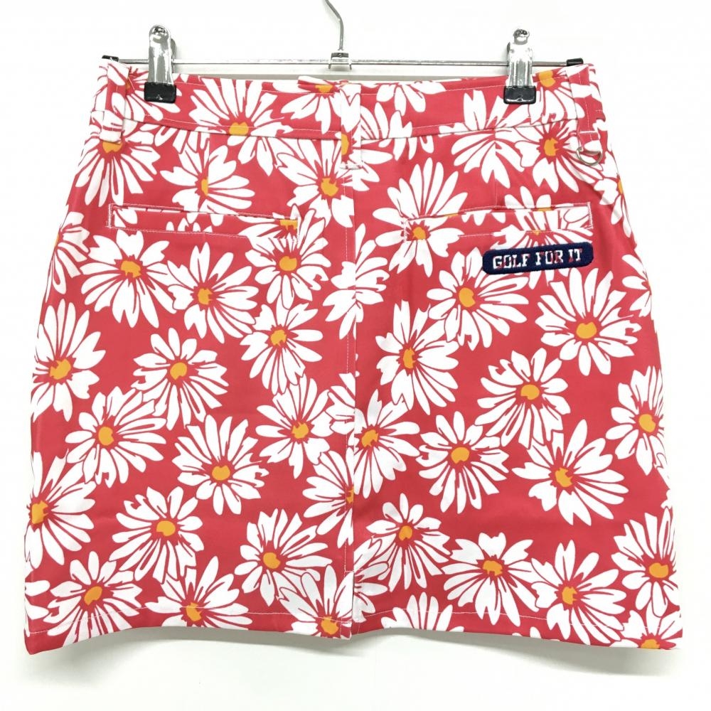 【新品】キスオンザグリーン スカート レッドピンク系×白 花柄 内側インナーパンツ レディース 3(L) ゴルフウェア kiss on the green
