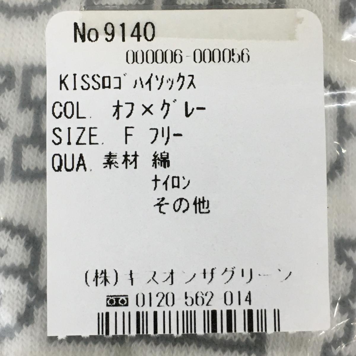 【新品】キスオンザグリーン ハイソックス 白×グレー ロゴ総柄 レディース F ゴルフウェア kiss on the green