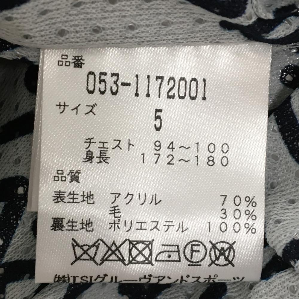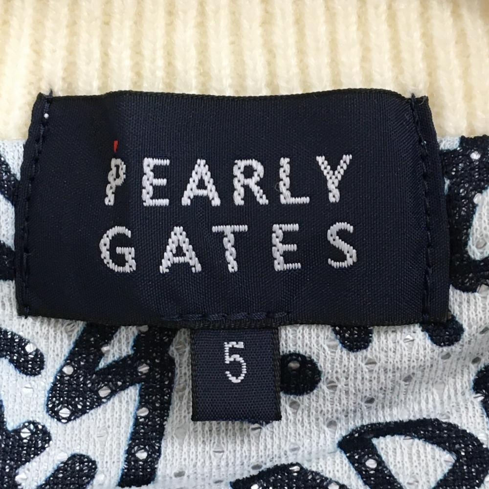 【新品】パーリーゲイツ ニットジャケット 白系×黒 裏地英字総柄 ウール混 ブルゾン メンズ 5(L) ゴルフウェア PEARLY GATES