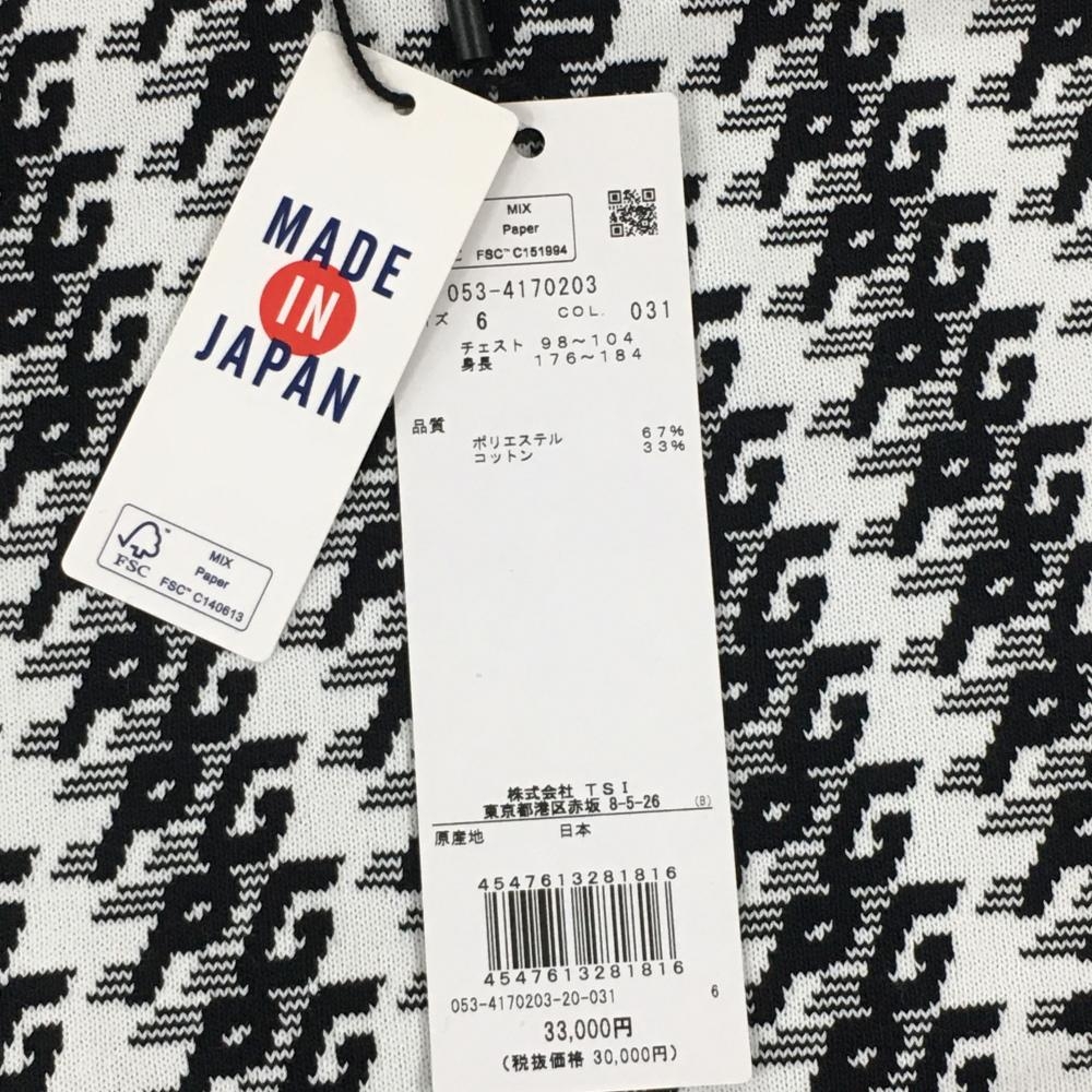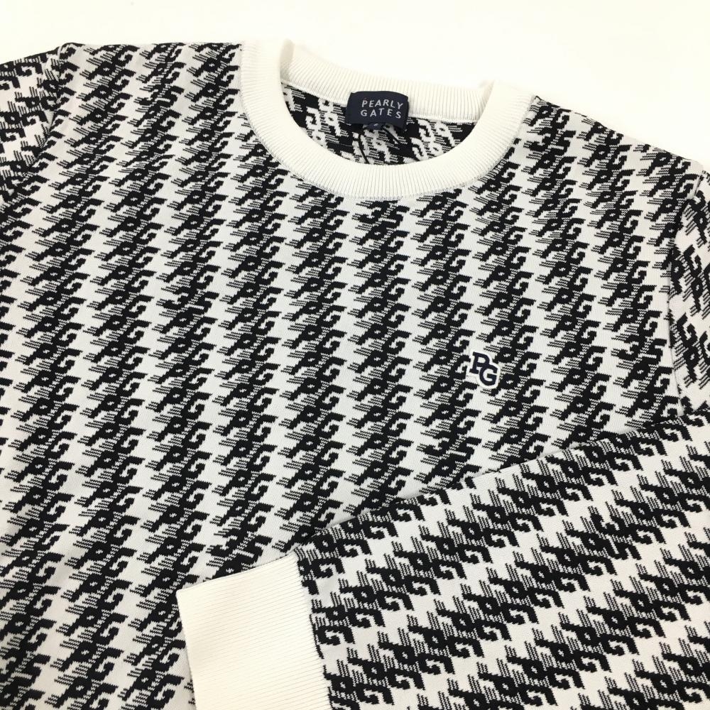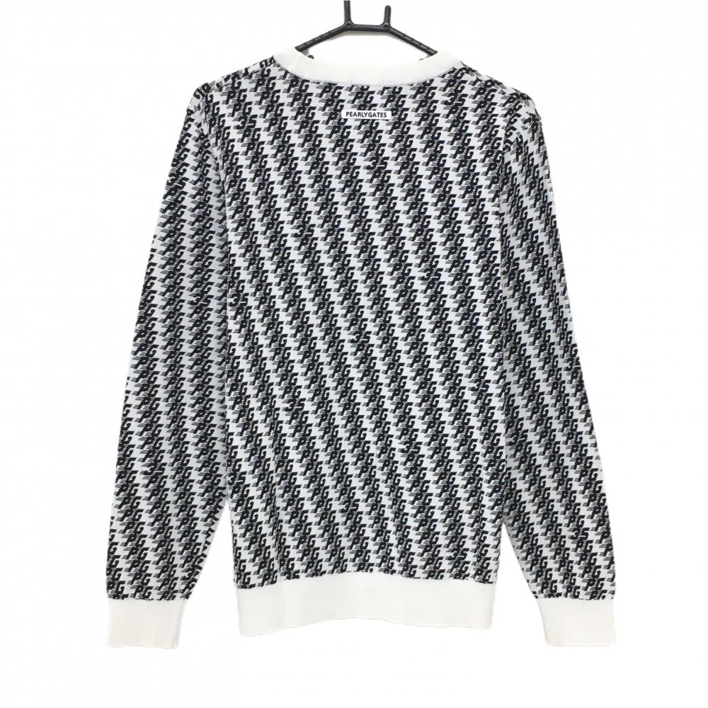 【新品】パーリーゲイツ セーター 白×黒 ロゴ総柄 コットン混 ニット メンズ 6(XL) ゴルフウェア 2024年モデル PEARLY GATES