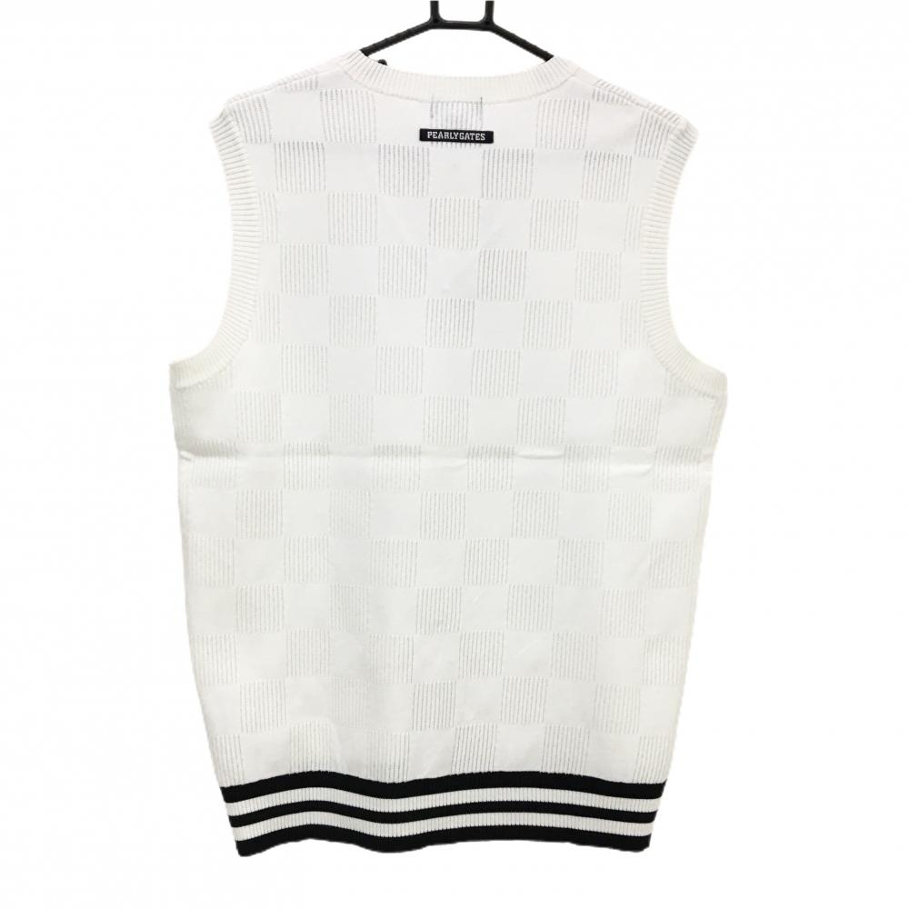 【新品】パーリーゲイツ ニットベスト 白 ブロックチェック風織生地 胸ロゴ Vネック メンズ 6(XL) ゴルフウェア PEARLY GATES