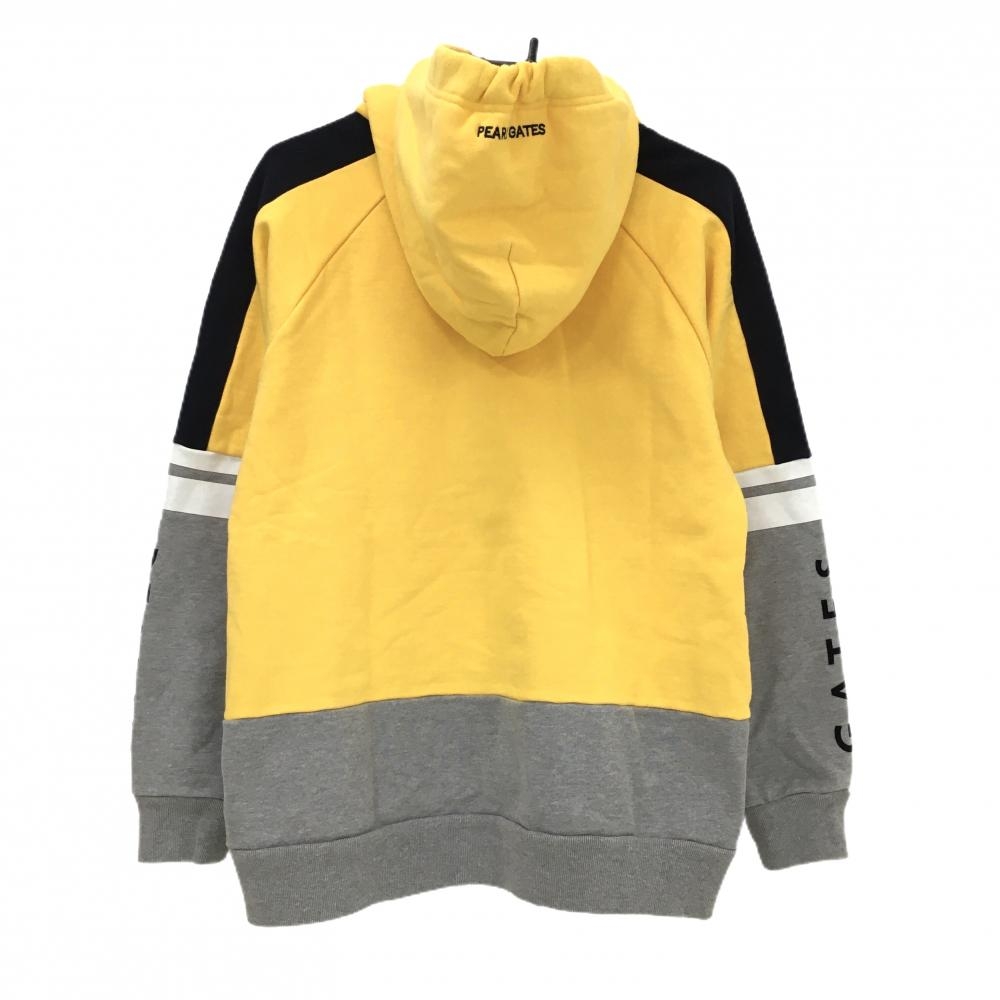 【美品】パーリーゲイツ パーカー イエロー×グレー 袖ロゴ トレーナー レディース 1(M) ゴルフウェア PEARLY GATES