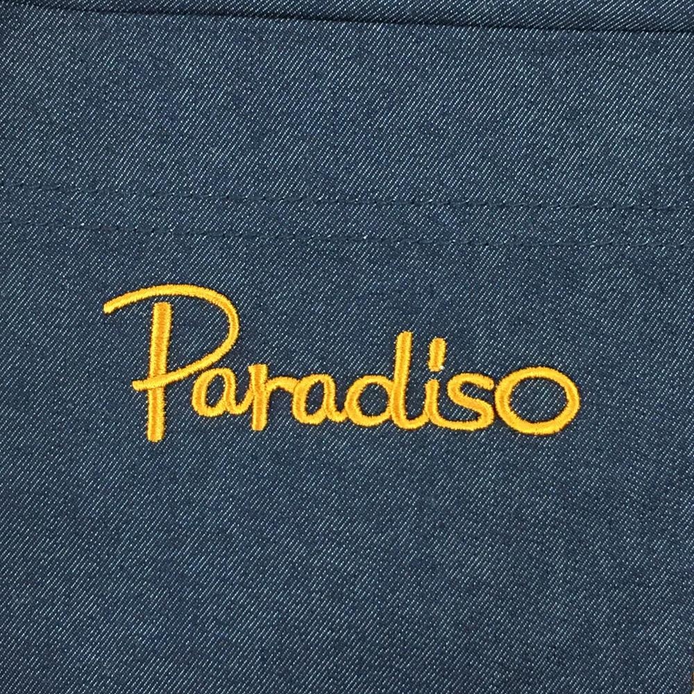 【超美品】パラディーゾ パンツ ネイビー デニム風 ロゴ刺しゅう レディース M ゴルフウェア Paradiso