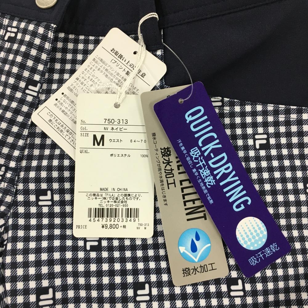 【新品】フィラゴルフ パンツ ネイビー×白 チェック 吸汗速乾 ストレッチ レディース M ゴルフウェア FILA GOLF