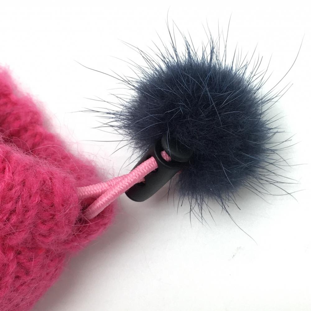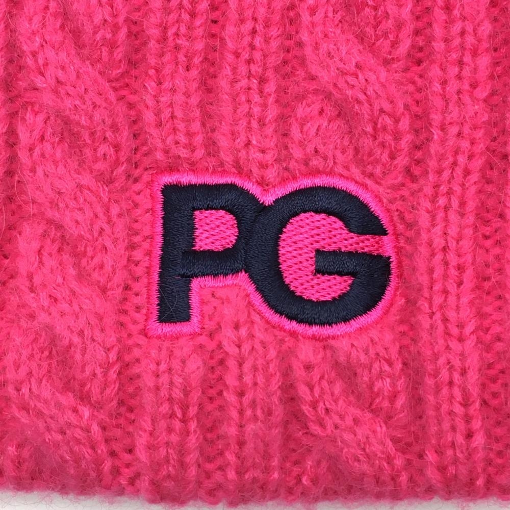 パーリーゲイツ ニットネックウォーマー ピンク×ネイビー ケーブル編み ボンボン付 FR ゴルフウェア PEARLY GATES