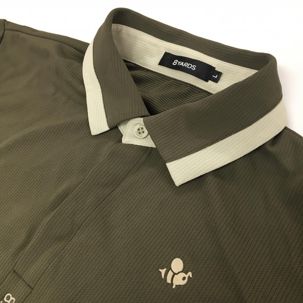【超美品】ハチヤーズ 長袖ポロシャツ ブラウン×ライトベージュ 前立て下ロゴ刺しゅう メンズ L ゴルフウェア 8YARDS