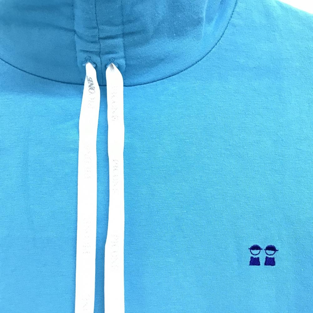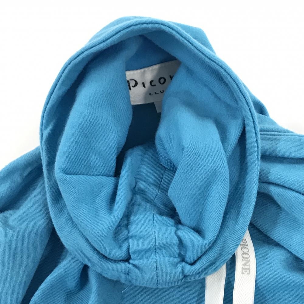 【美品】ピッコーネクラブ 長袖ハイネックシャツ ライトブルー×白 ネック紐 ロゴ刺しゅう レディース I(M) ゴルフウェア PICONE