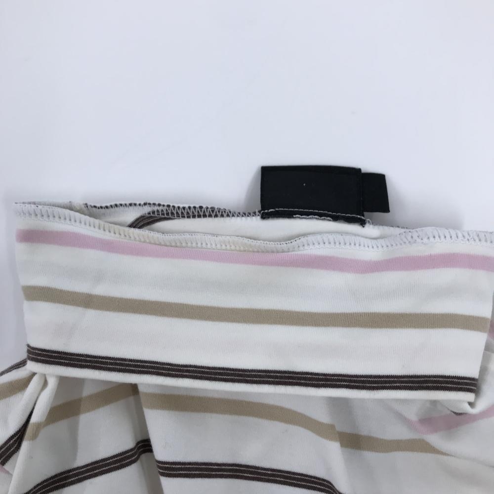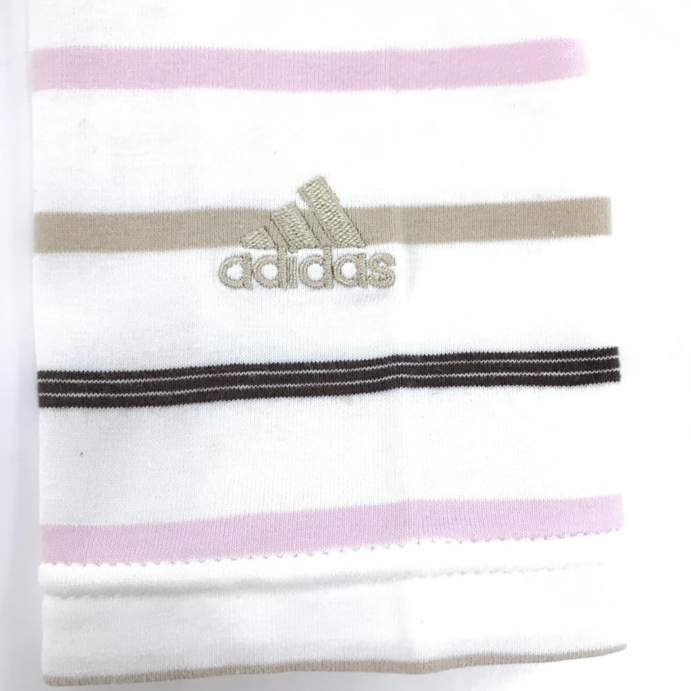 【美品】アディダス 長袖ハイネックシャツ 白×ピンク×ブラウン ボーダー 袖口ロゴ レディース S/P ゴルフウェア adidas
