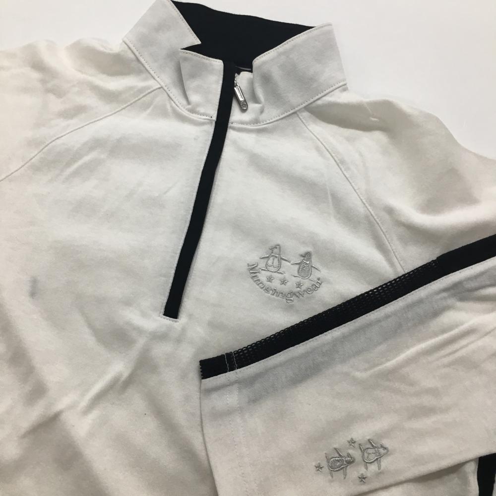【美品】マンシングウェア 長袖ハイネックシャツ 白×黒 ハーフジップ 袖一部メッシュ レディース M ゴルフウェア Munsingwear