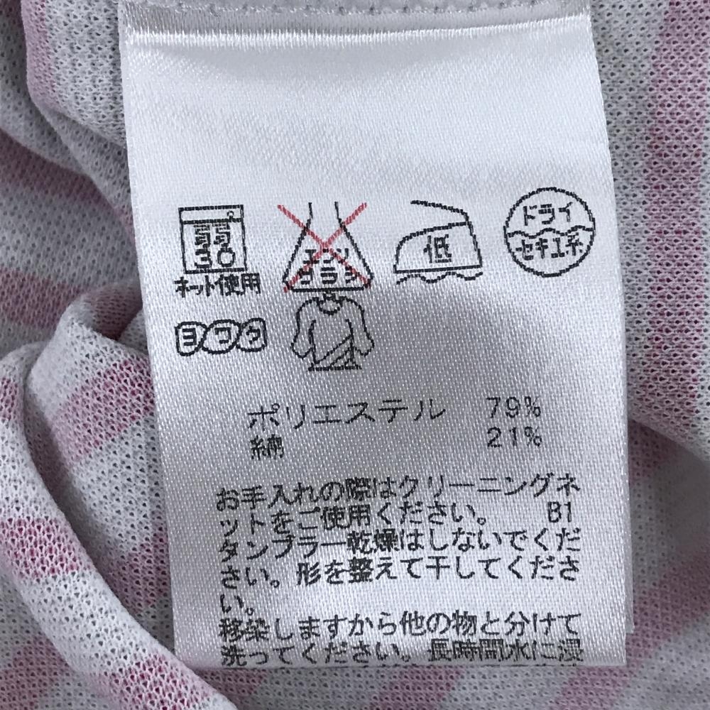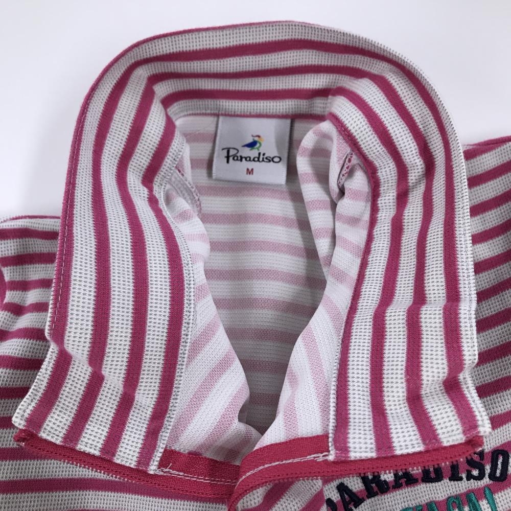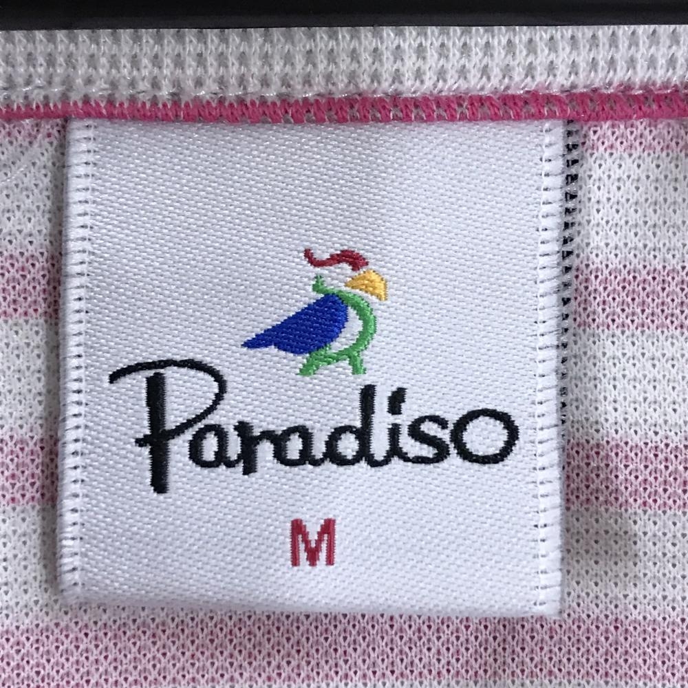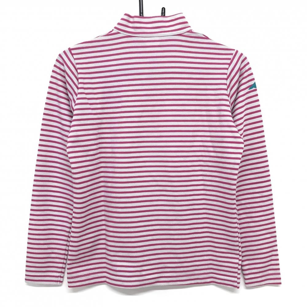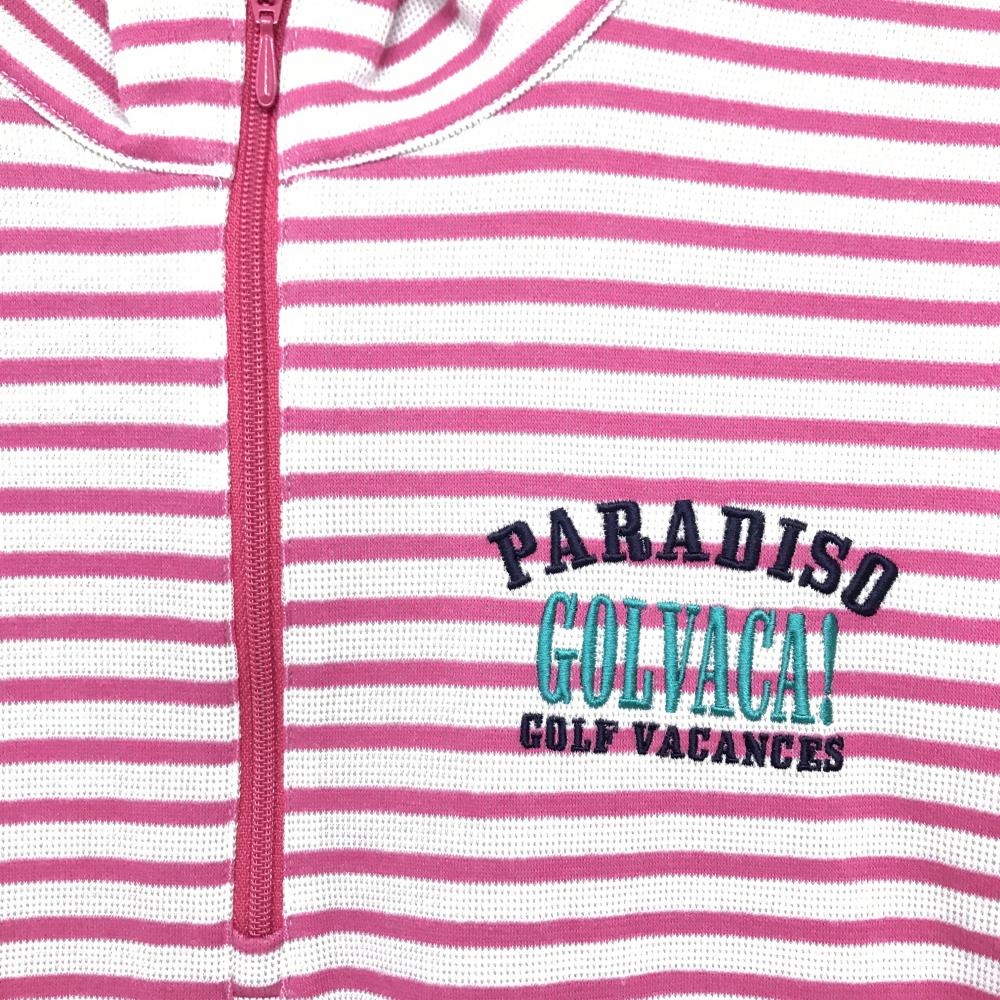 【美品】パラディーゾ 長袖ハイネックシャツ ライトグレー×ピンク ボーダー ハーフジップ レディース M ゴルフウェア Paradiso