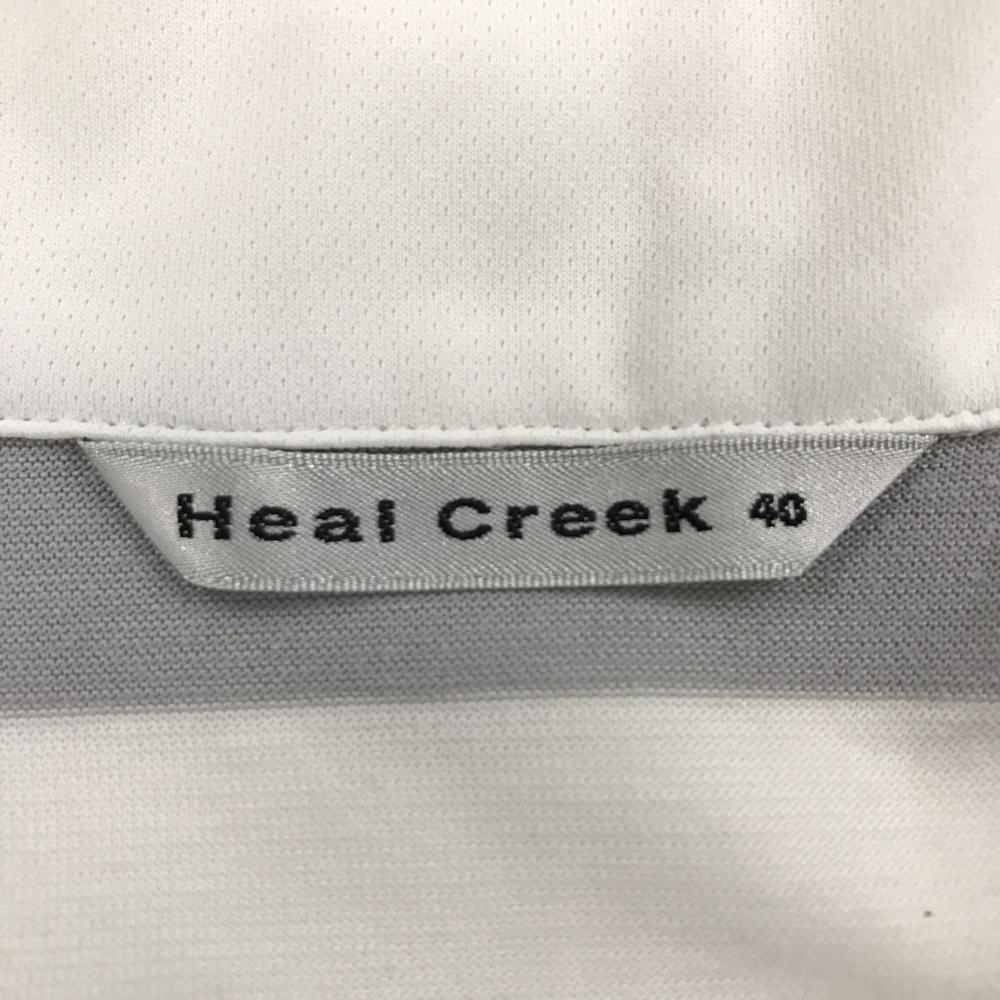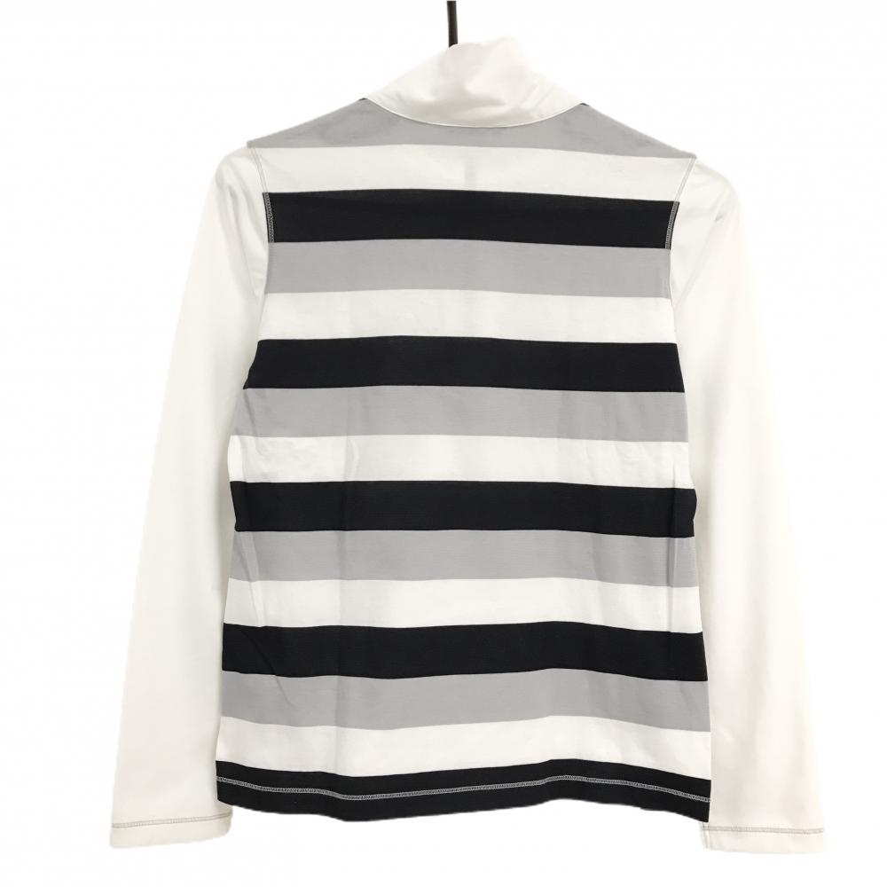 【超美品】ヒールクリーク 長袖ハイネックシャツ 白×グレー×ネイビー 後ろ身頃ボーダー レディース 40(M) ゴルフウェア Heal Creek