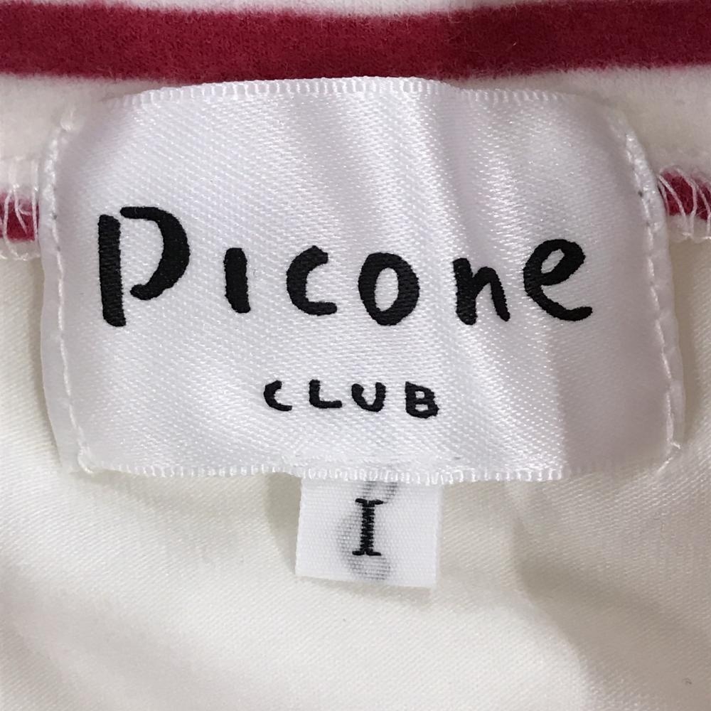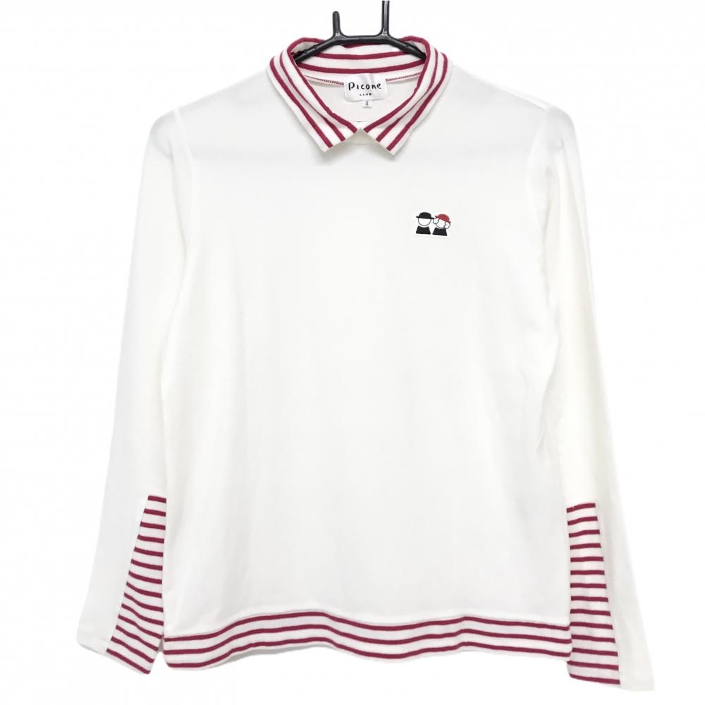 【美品】ピッコーネクラブ 長袖ハイネックシャツ 白×レッド ネック・袖口・裾ボーダー ワッペン レディース I(M) ゴルフウェア PICONE