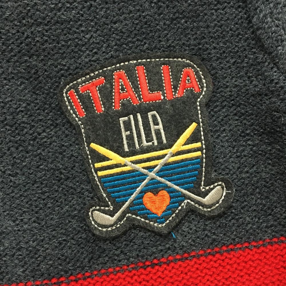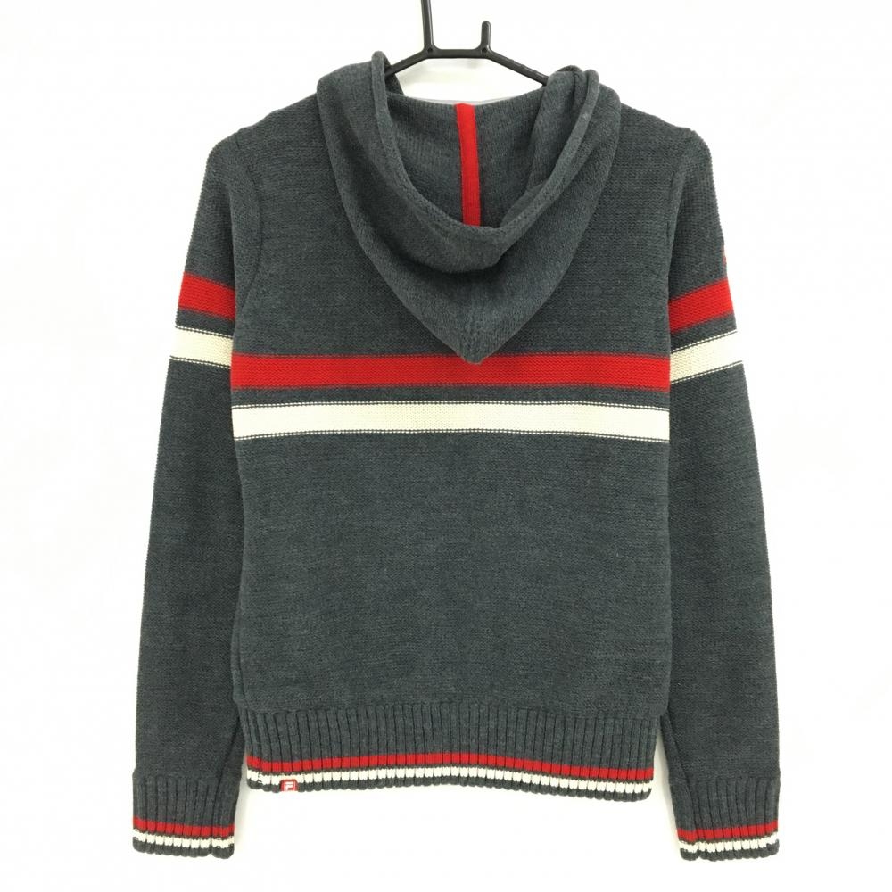 【超美品】フィラゴルフ ニットジップパーカー グレー×レッド フロント・袖ライン ウール混 レディース M ゴルフウェア FILA GOLF