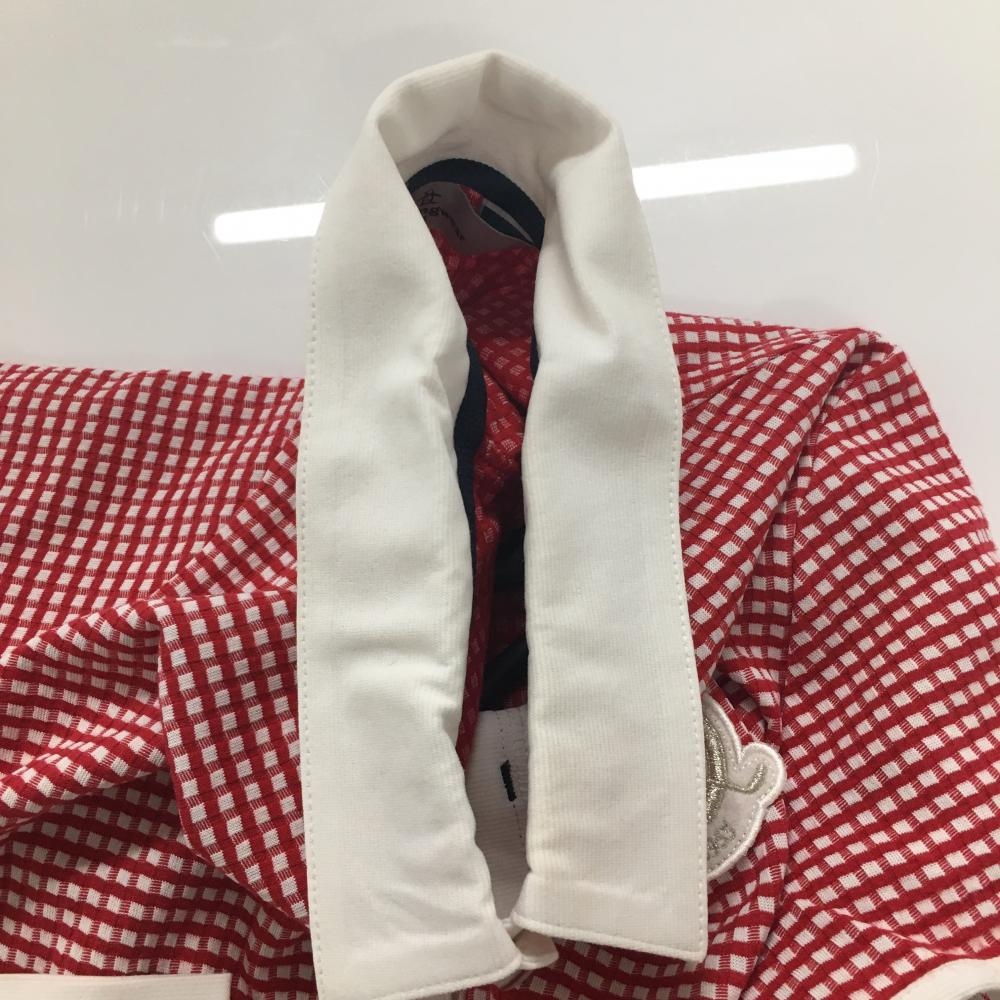 【美品】マンシングウェア 長袖ポロシャツ 白×レッド 格子柄 重ね着風 レディース M ゴルフウェア Munsingwear