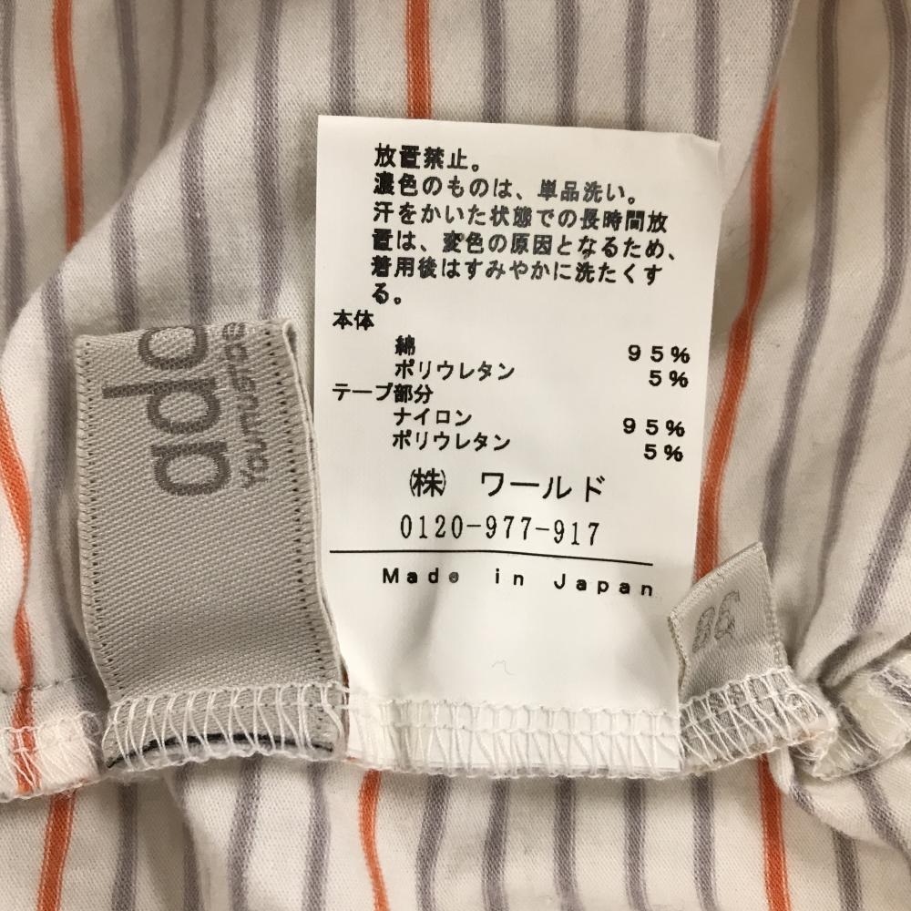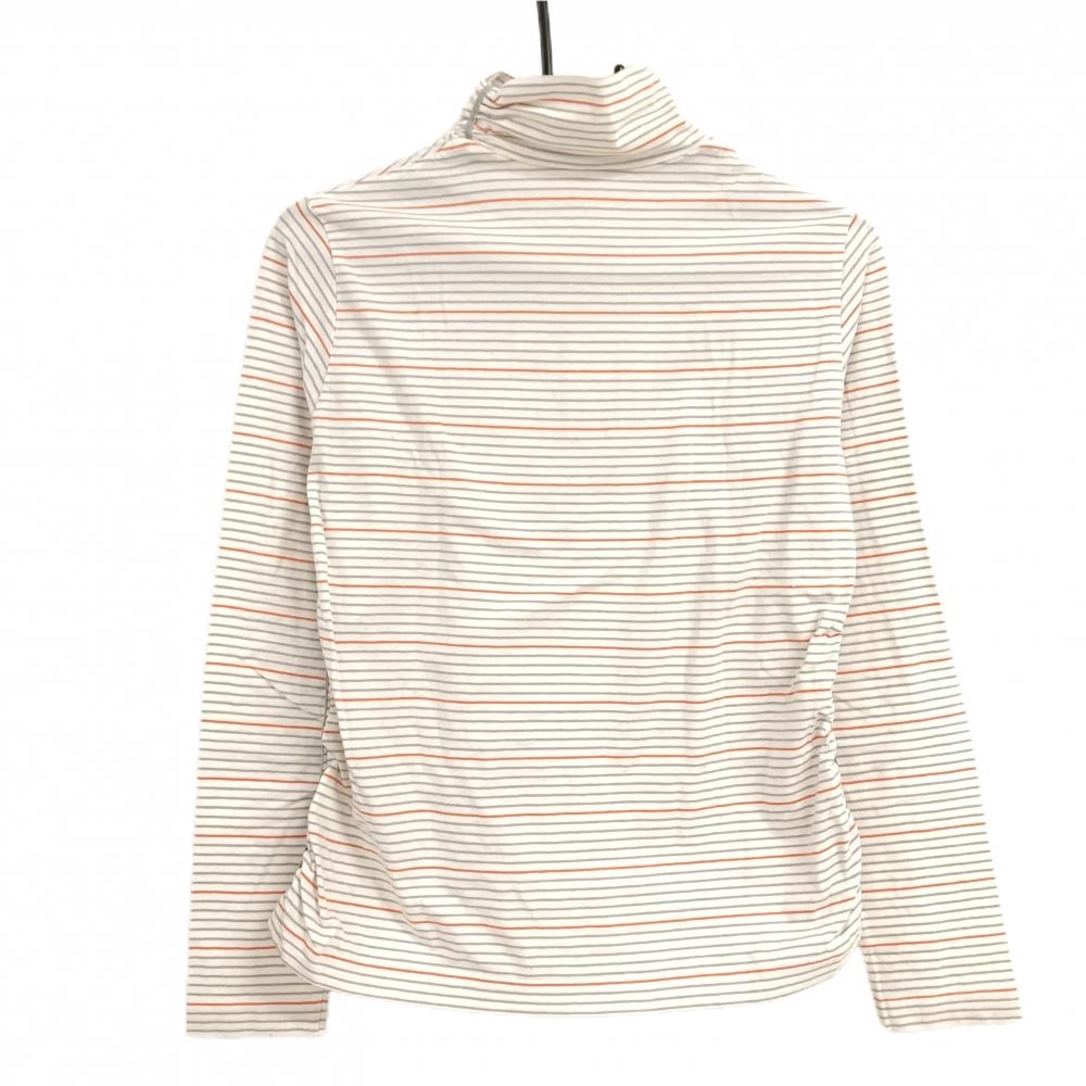 【美品】アダバット 長袖ハイネックシャツ 白×グレー×オレンジ ボーダー サイドライン レディース 38(M) ゴルフウェア adabat