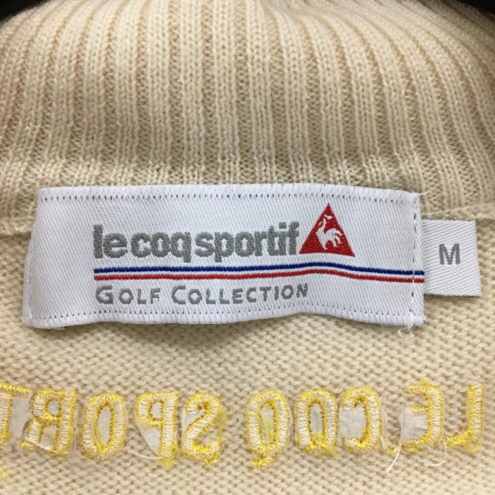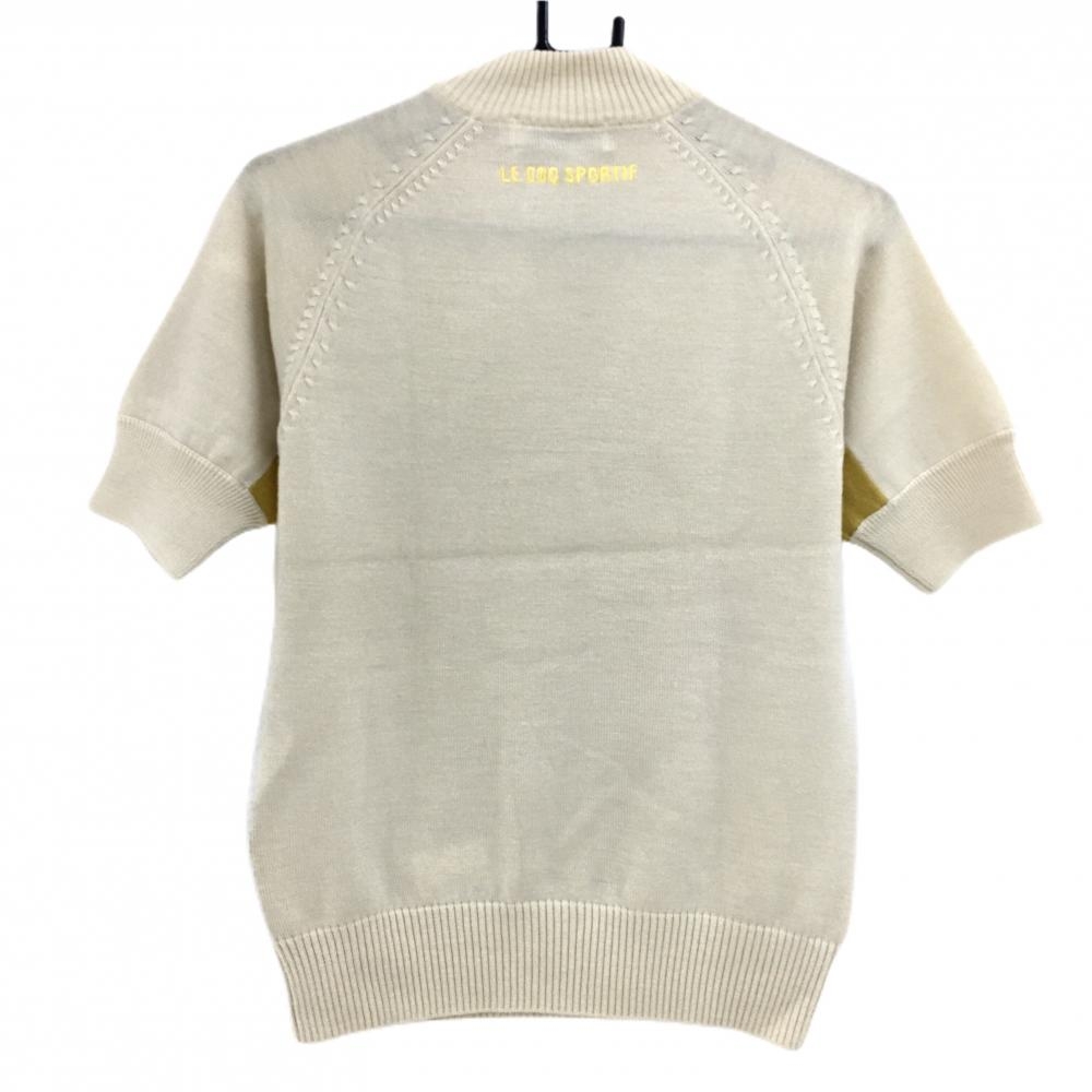 【超美品】ルコックゴルフ 半袖異素材ブルゾン ベージュ 身頃異素材 ロゴ刺しゅう ハーフジップ レディース M ゴルフウェア le coq sportif