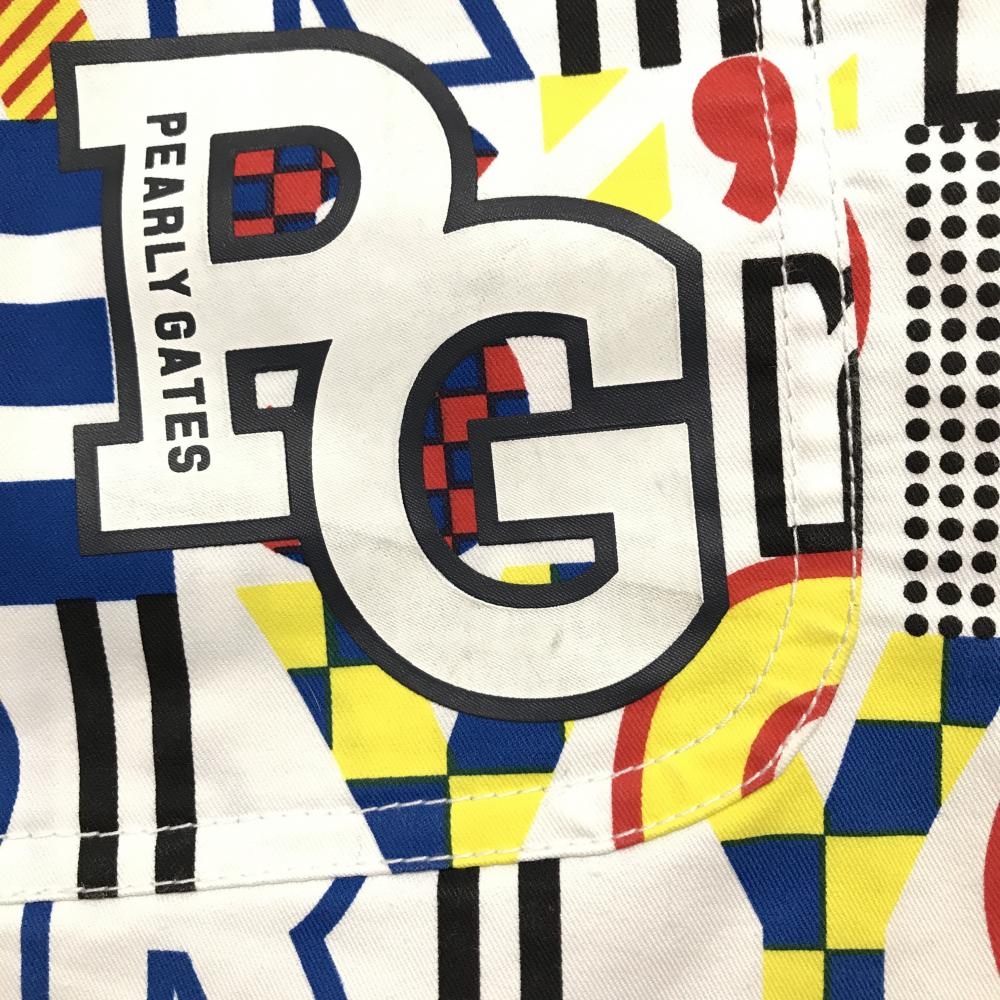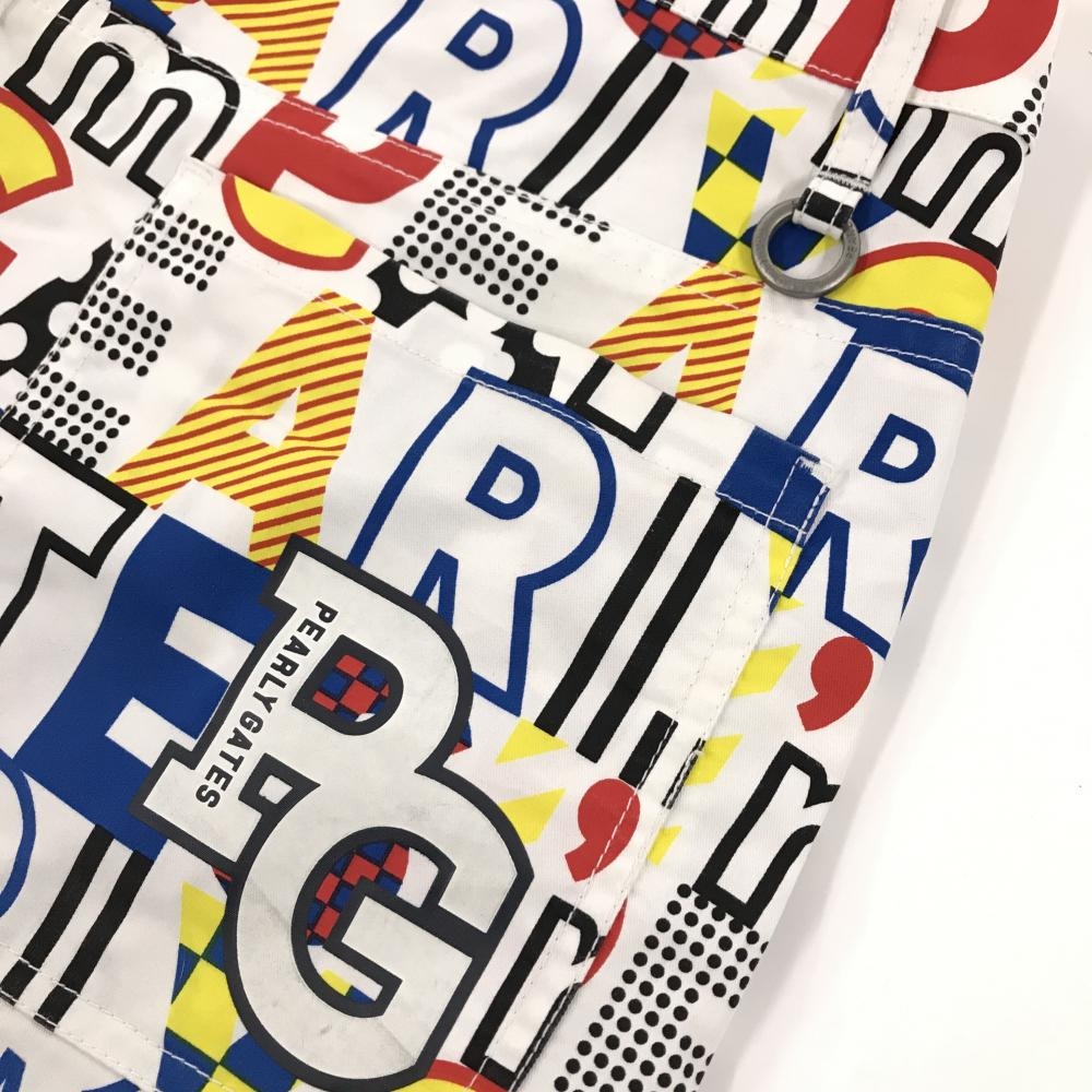 【美品】パーリーゲイツ スカート 白×マルチカラー ロゴ総柄 ストレッチ 30周年 レディース 1(M) ゴルフウェア PEARLY GATES