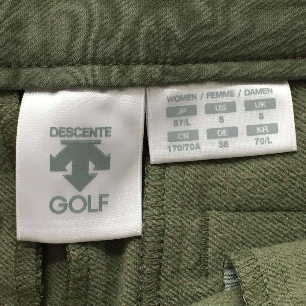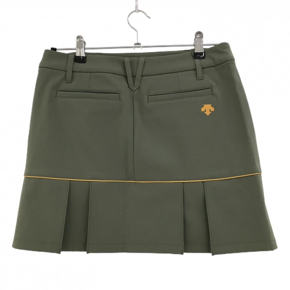 【超美品】デサントゴルフ スカート カーキ ロゴオレンジ 裏微起毛 ストレッチ レディース 67/L ゴルフウェア DESCENTE