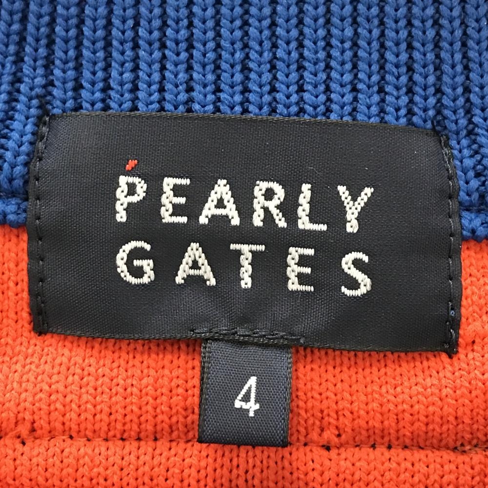 【美品】パーリーゲイツ セーター ブルー×オレンジ ロゴ総柄 メンズ 4(M) ゴルフウェア PEARLY GATES