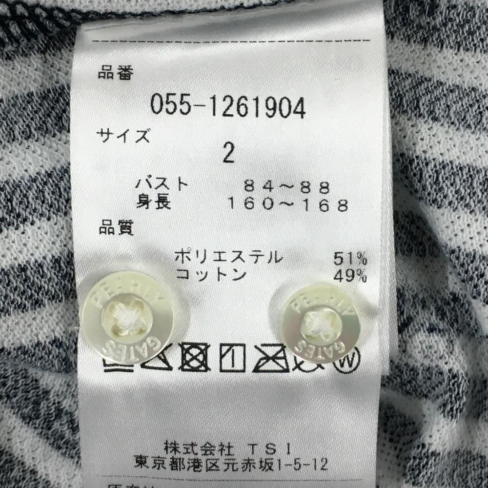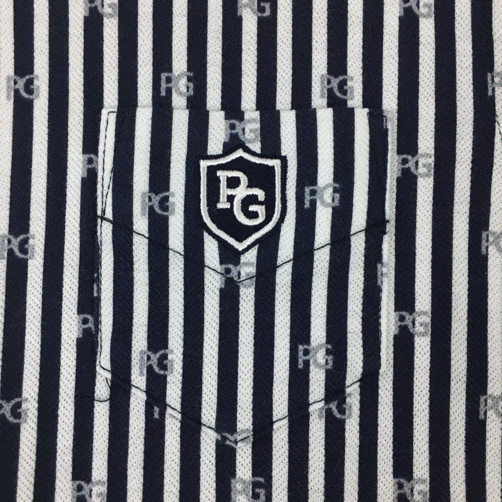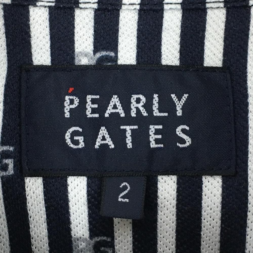 【超美品】パーリーゲイツ 長袖ポロシャツ ネイビー×白 ストライプ ロゴ総柄 レディース 2(L) ゴルフウェア PEARLY GATES