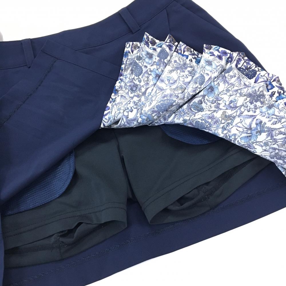 【美品】テーラーメイド スカート ネイビー 裾一部花柄 内側インナーパンツ ストレッチ レディース XS ゴルフウェア TaylorMade