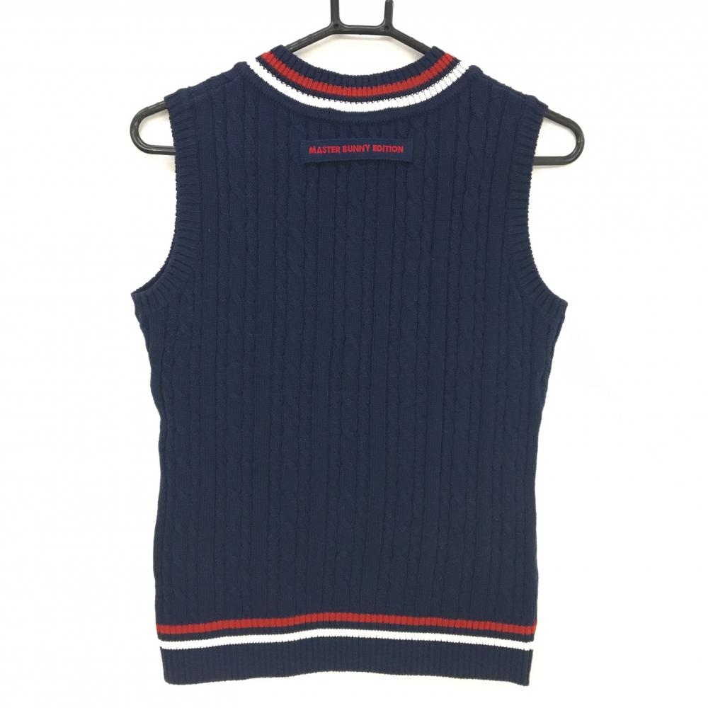 マスターバニー ニットベスト ネイビー ケーブル編み コットン混 レディース 2(L) ゴルフウェア MASTER BUNNY EDITION