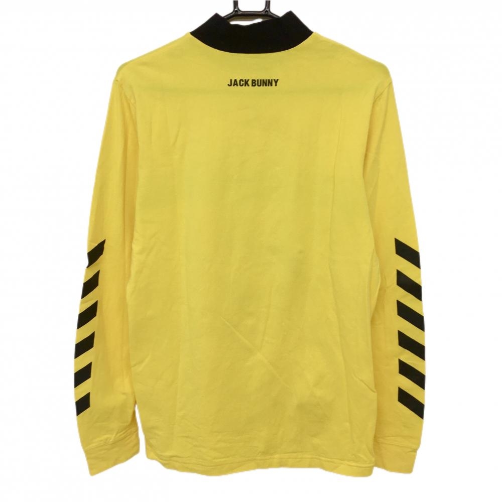 【美品】ジャックバニー 長袖ハイネックシャツ イエロー×黒 フロントロゴ ストレッチ メンズ 5(L) ゴルフウェア Jack Bunny