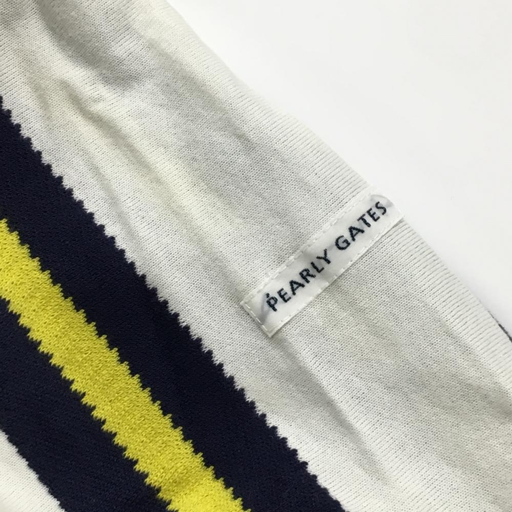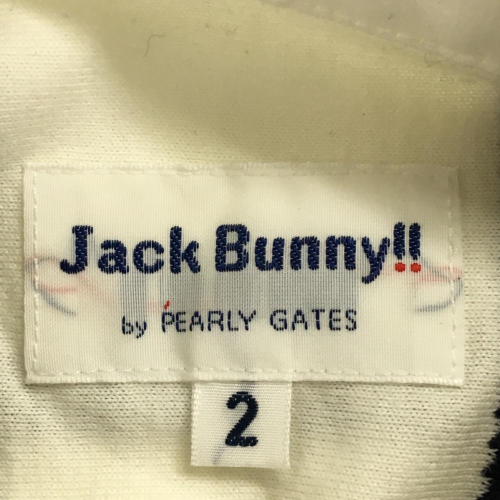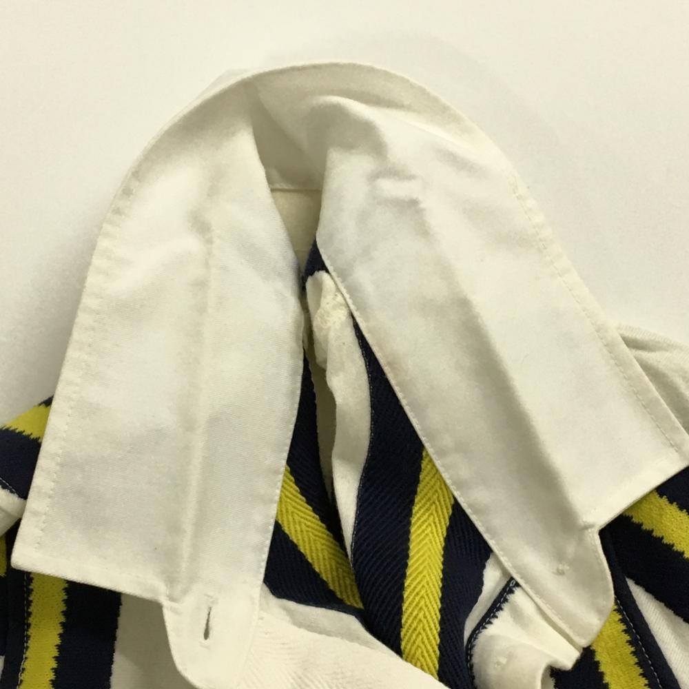 ジャックバニー 長袖ポロシャツ 白×ネイビー×イエロー ストライプ ワッペン レディース 2(L) ゴルフウェア Jack Bunny
