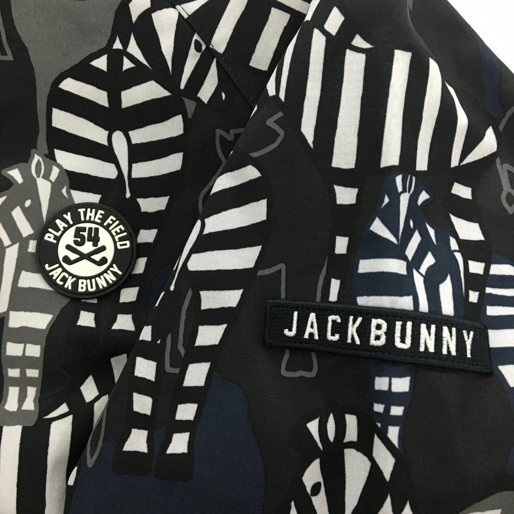 【超美品】ジャックバニー ジップパーカー ネイビー×黒 ゼブラ総柄 メッシュ裏地 レディース 2(L) ゴルフウェア Jack Bunny