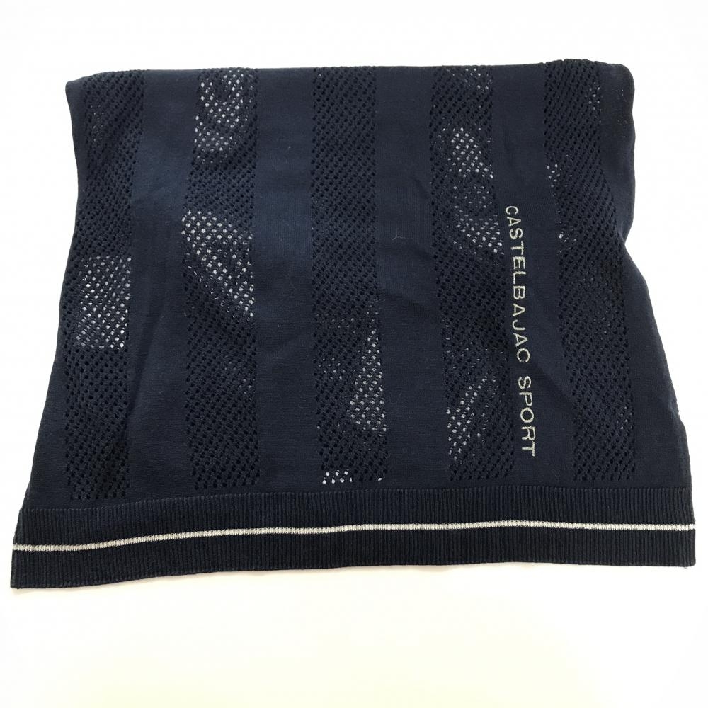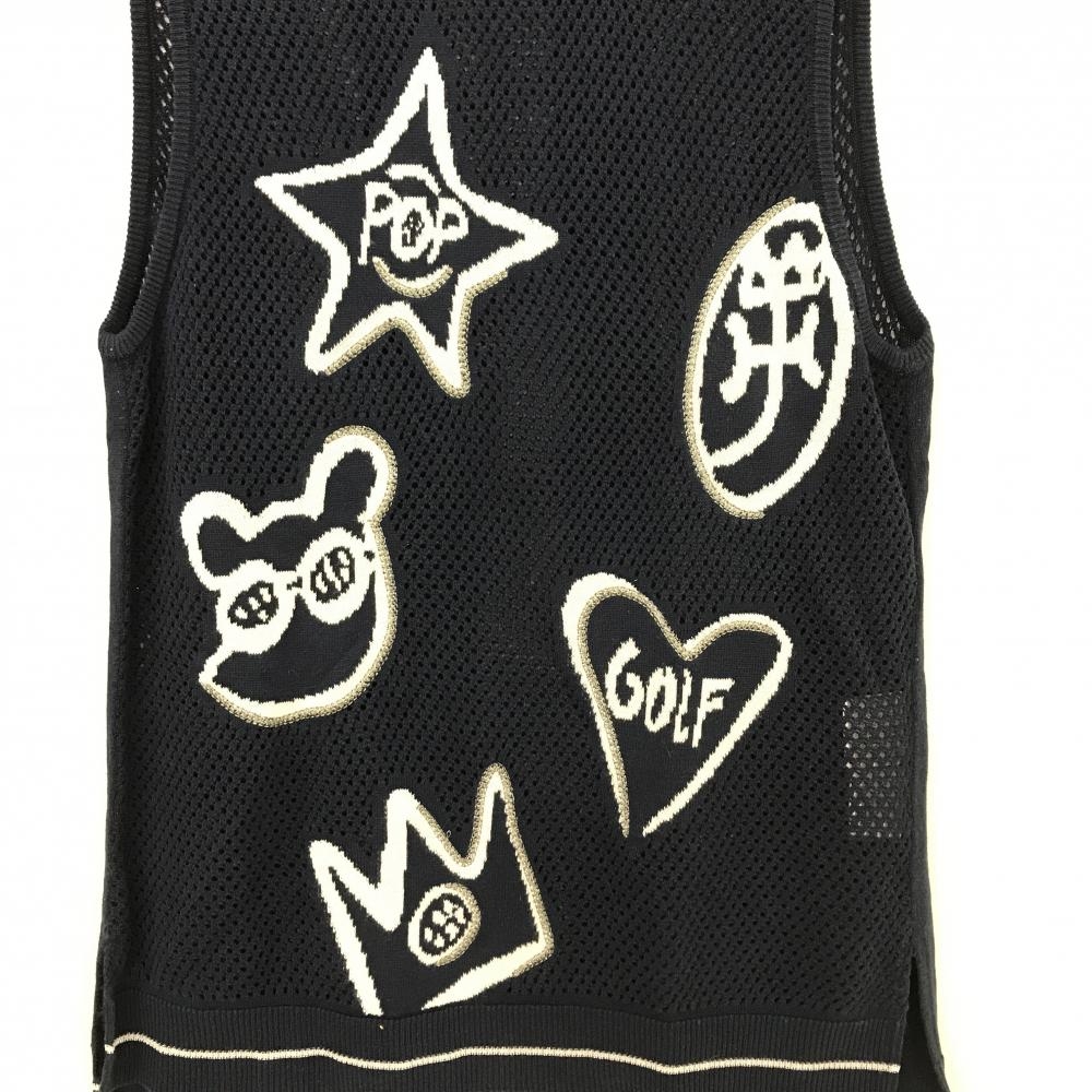 【美品】カステルバジャック ニットベスト ネイビー 透かし編み 星 ハート レディース 42(L) ゴルフウェア CASTELBAJAC