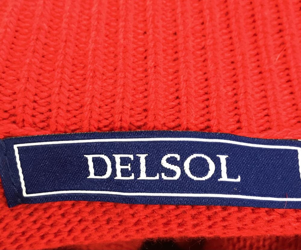 デルソル タートルネックセーター レッド×ネイビー 袖星ライン アンゴラ混 ニット レディース L ゴルフウェア DELSOL