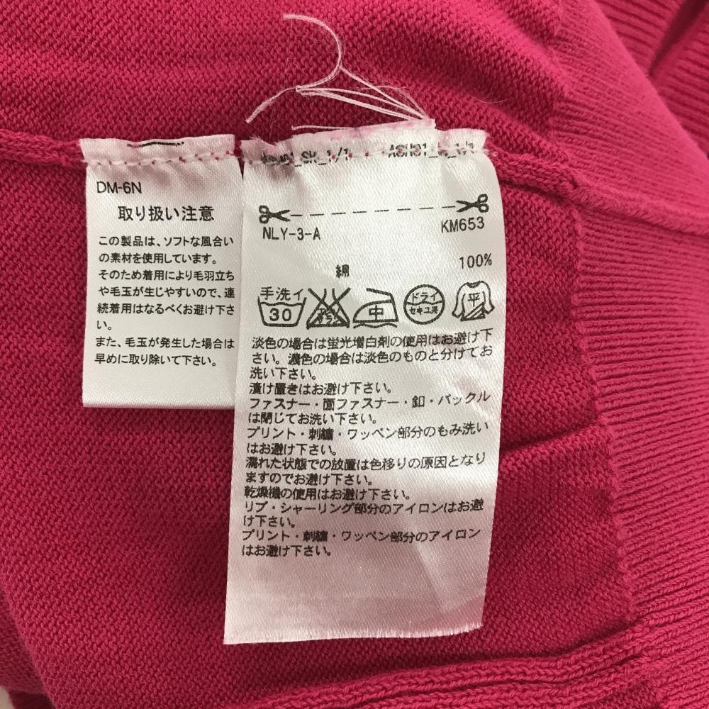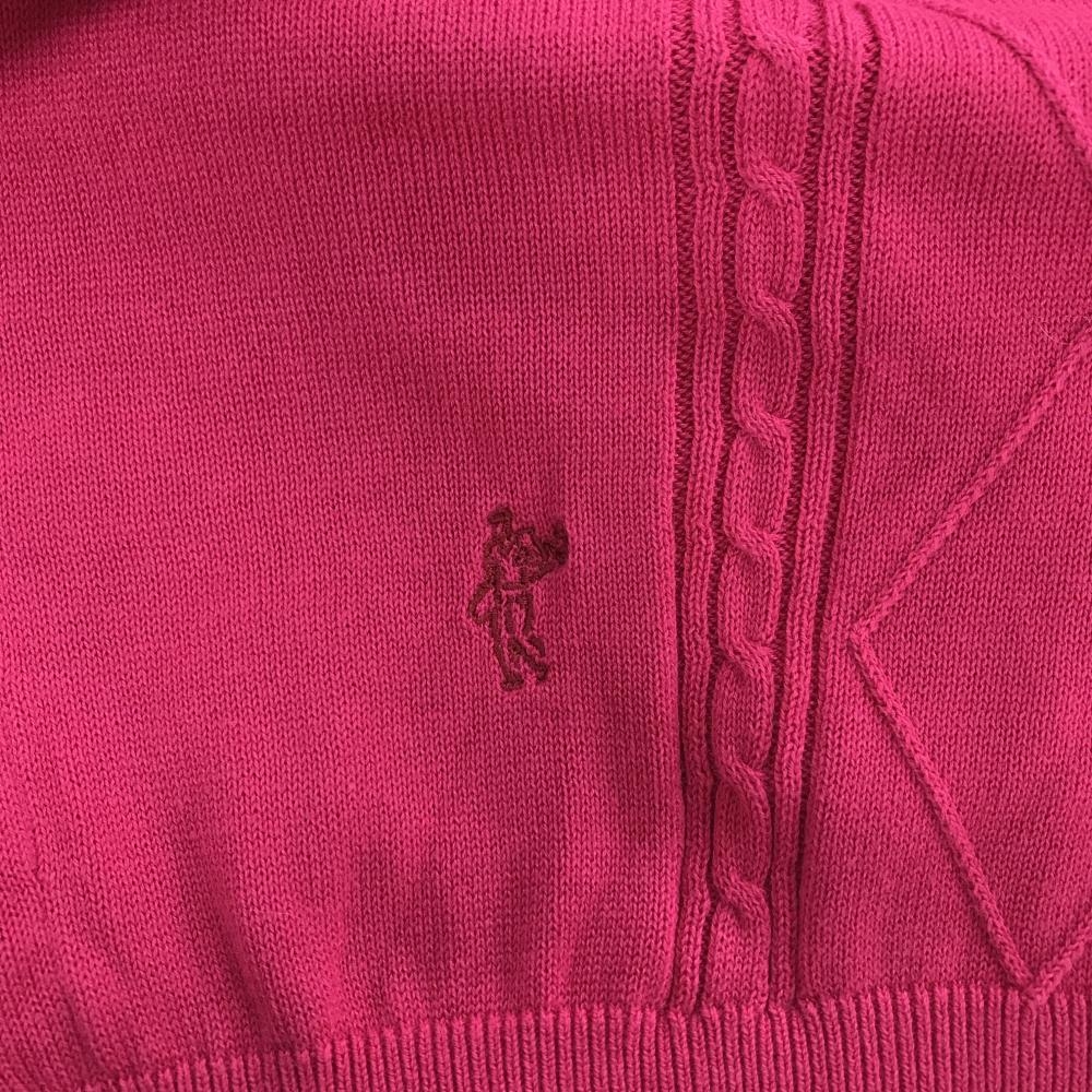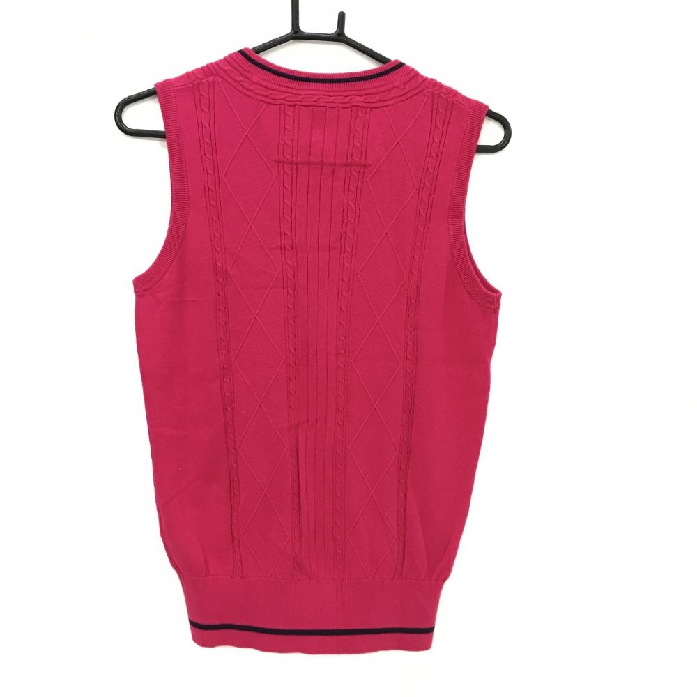 【超美品】アシュワース ニットベスト レッドピンク×ネイビー ケーブル編み Vネック 胸元ワッペン レディース L ゴルフウェア ASHWORTH