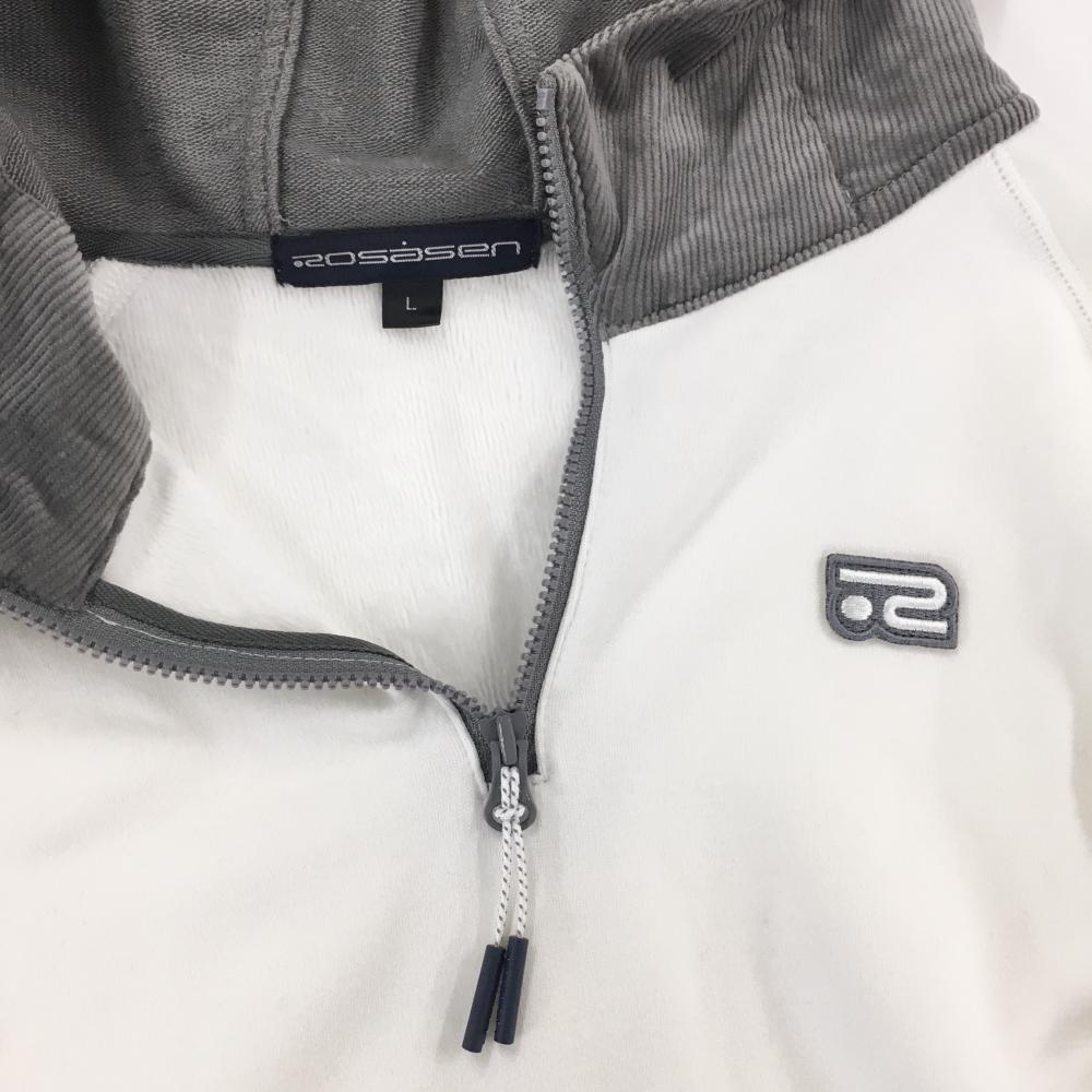 ロサーセン パーカー 白×グレー ハーフジップ ロゴワッペン レディース L ゴルフウェア Rosasen