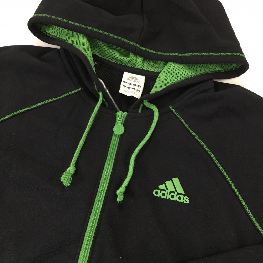 アディダス ジップパーカー 黒×グリーン フード内側メッシュ 胸元ロゴ レディース OT ゴルフウェア adidas