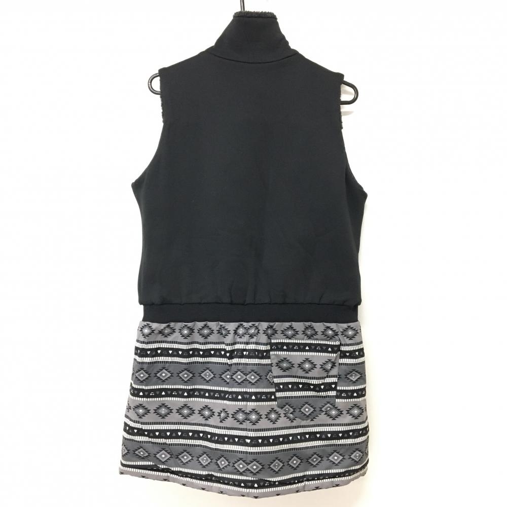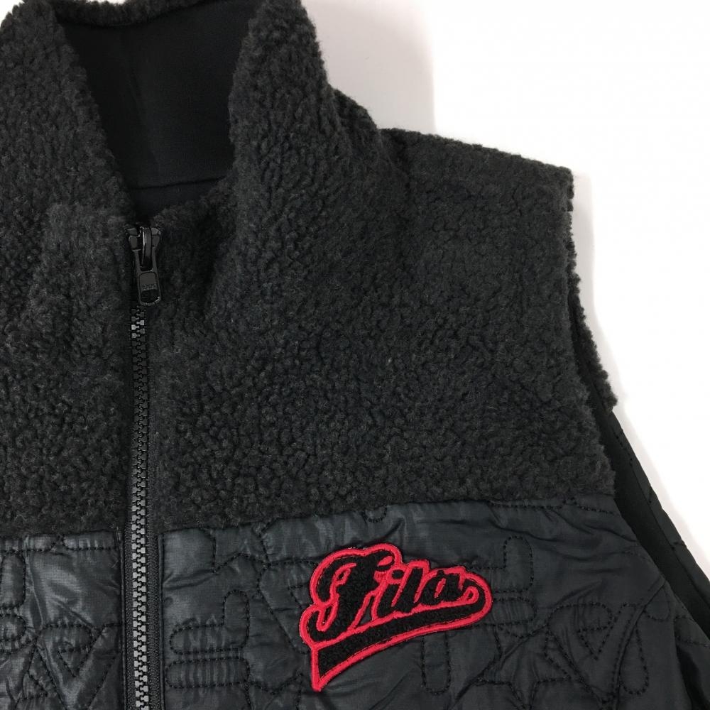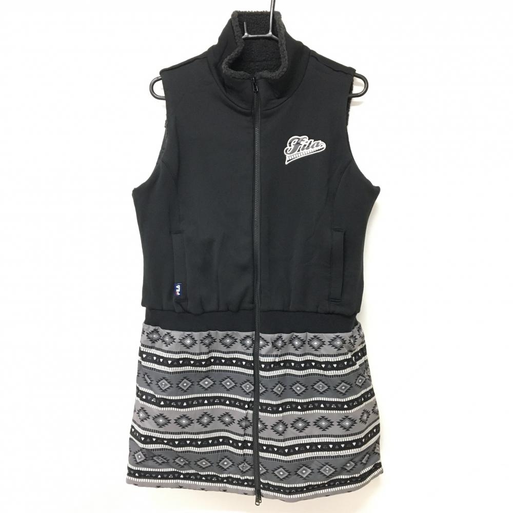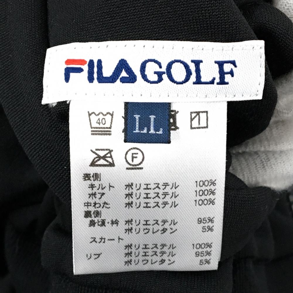 【超美品】フィラゴルフ 中綿ノースリーブワンピース ダークネイビー×ダークグレー 一部ボア レディース LL ゴルフウェア FILA GOLF