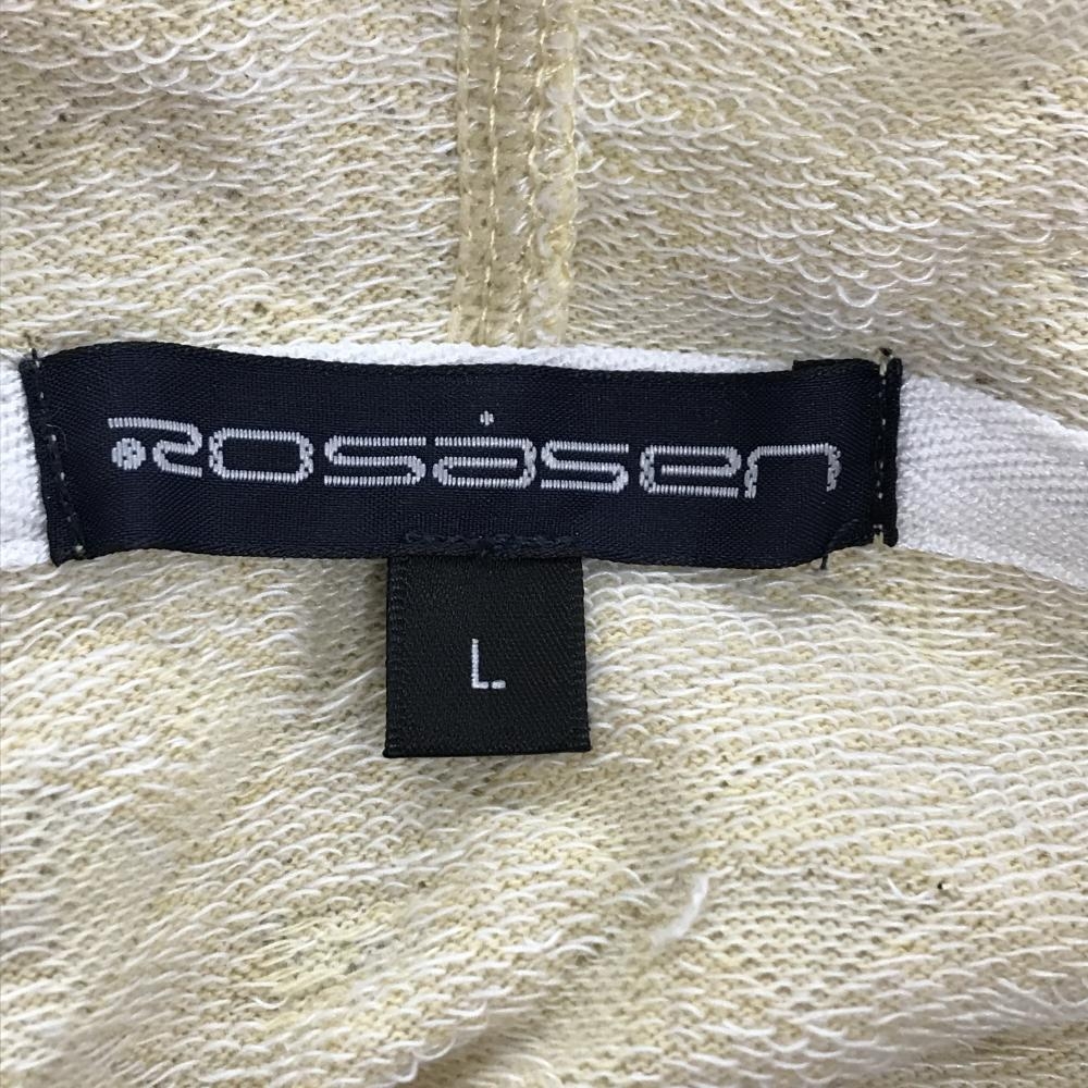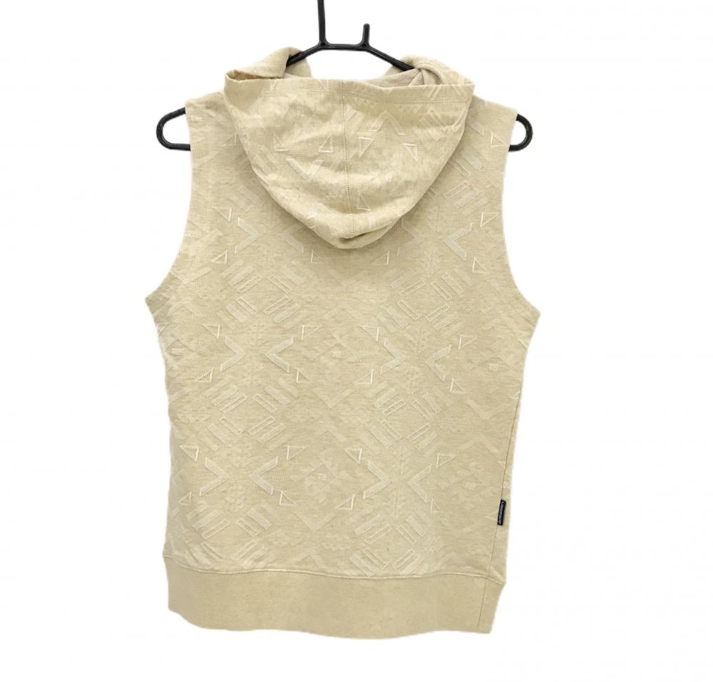 【美品】ロサーセン フード付きベスト ベージュ系×ブラウン 総柄 ロゴダメージ加工 レディース L ゴルフウェア Rosasen