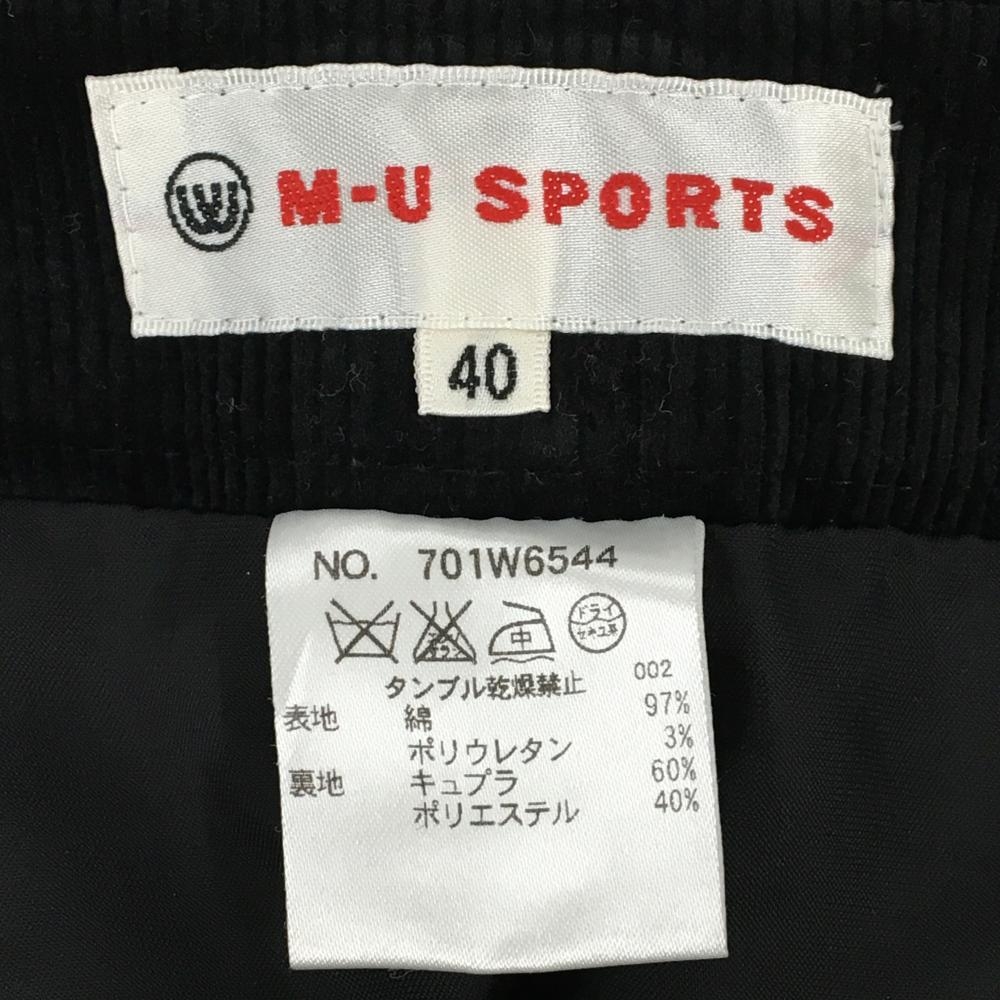 【美品】MUスポーツ コーデュロイスカート 黒 ロゴスパンコール 裏地付 レディース 40(M) ゴルフウェア M・U SPORTS