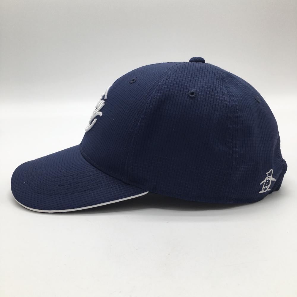 【超美品】マンシングウェア キャップ ネイビー 格子柄地模様 ロゴ白 ゴルフウェア Munsingwear