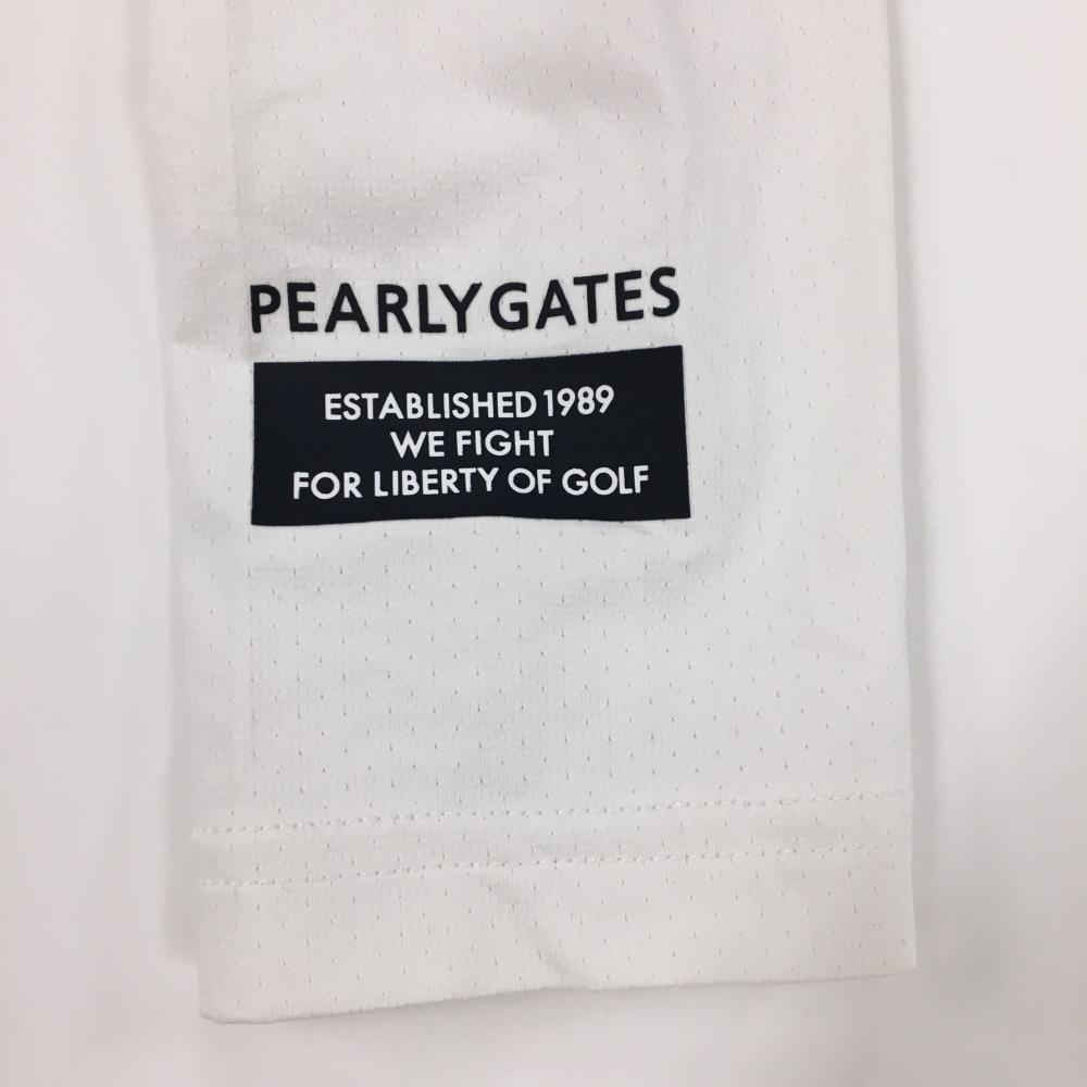 【美品】パーリーゲイツ インナーシャツ 白 メッシュ調 袖ロゴ レディース 2(L) ゴルフウェア PEARLY GATES