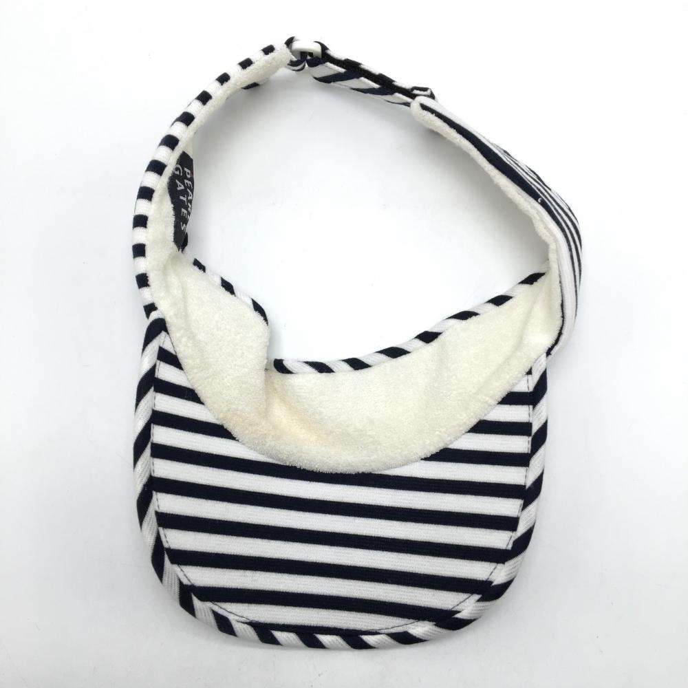 パーリーゲイツ サンバイザー 白×ダークネイビー ボーダー ロゴプリント ゴルフウェア PEARLY GATES
