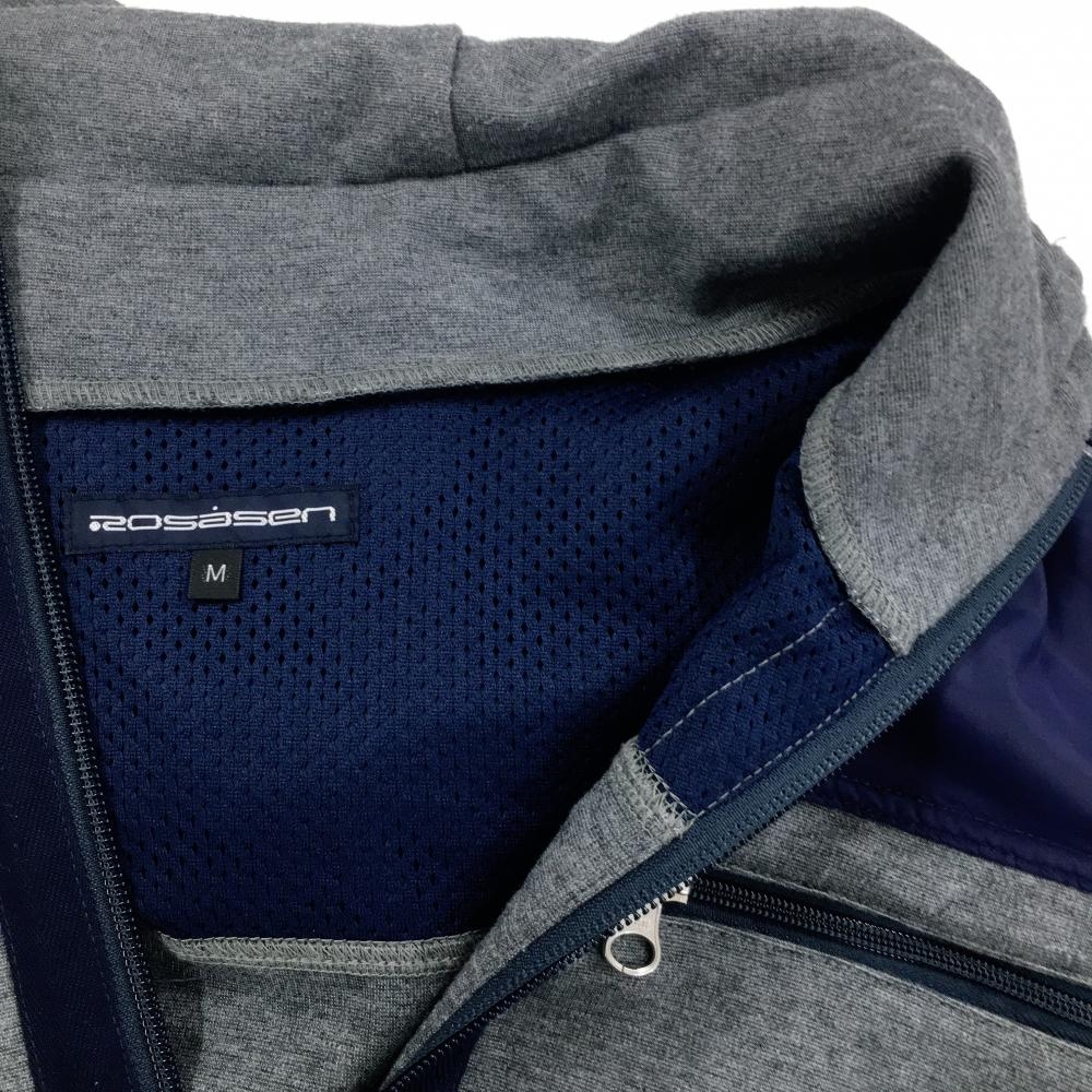 ロサーセン ジップパーカー グレー×ネイビー 異素材 裏一部メッシュ ジャケット レディース M ゴルフウェア Rosasen