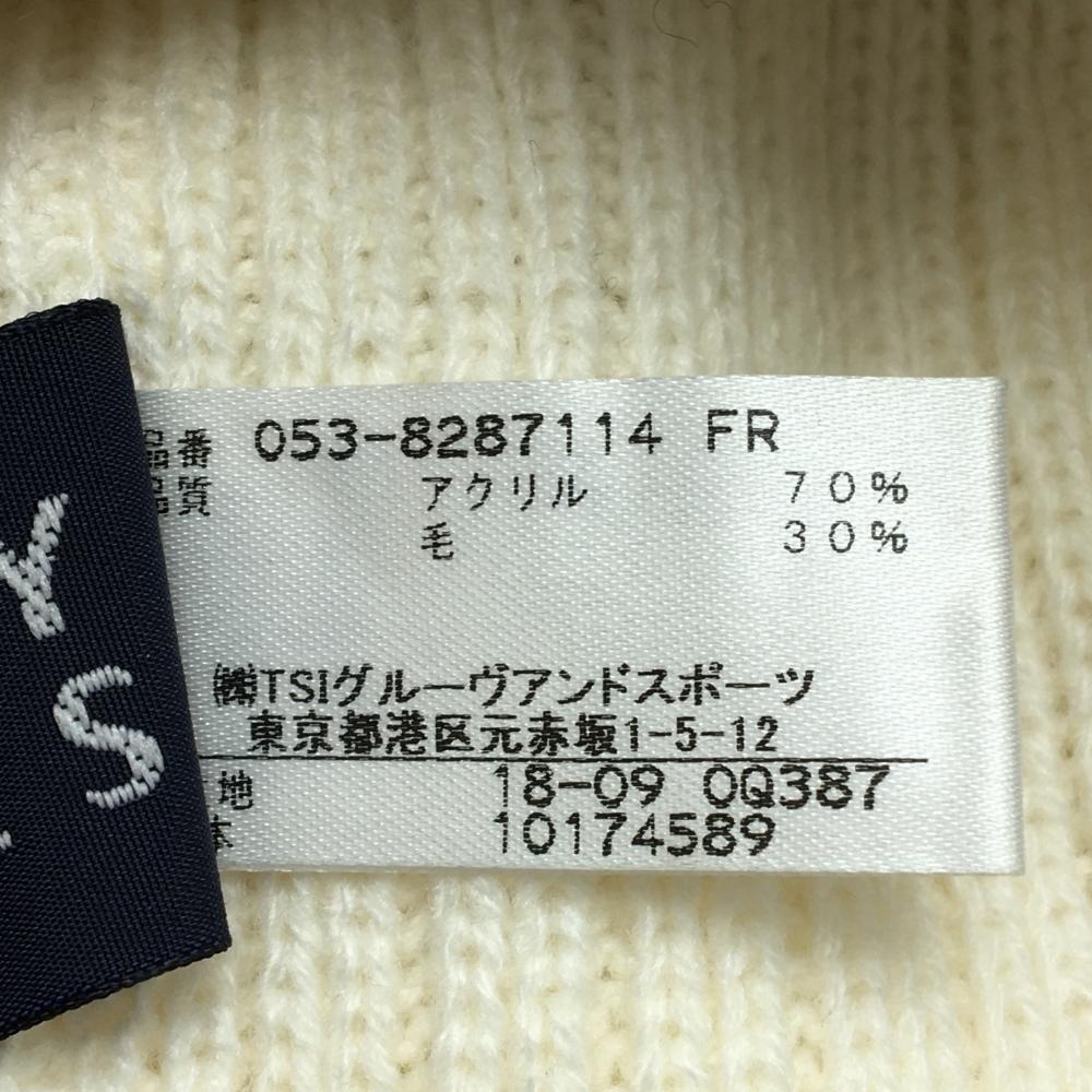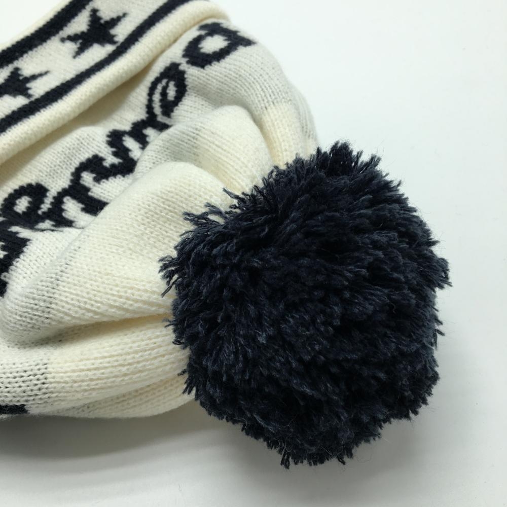 【超美品】パーリーゲイツ ニット帽 白×ネイビー ボンボン付き ロゴ FR ゴルフウェア PEARLY GATES