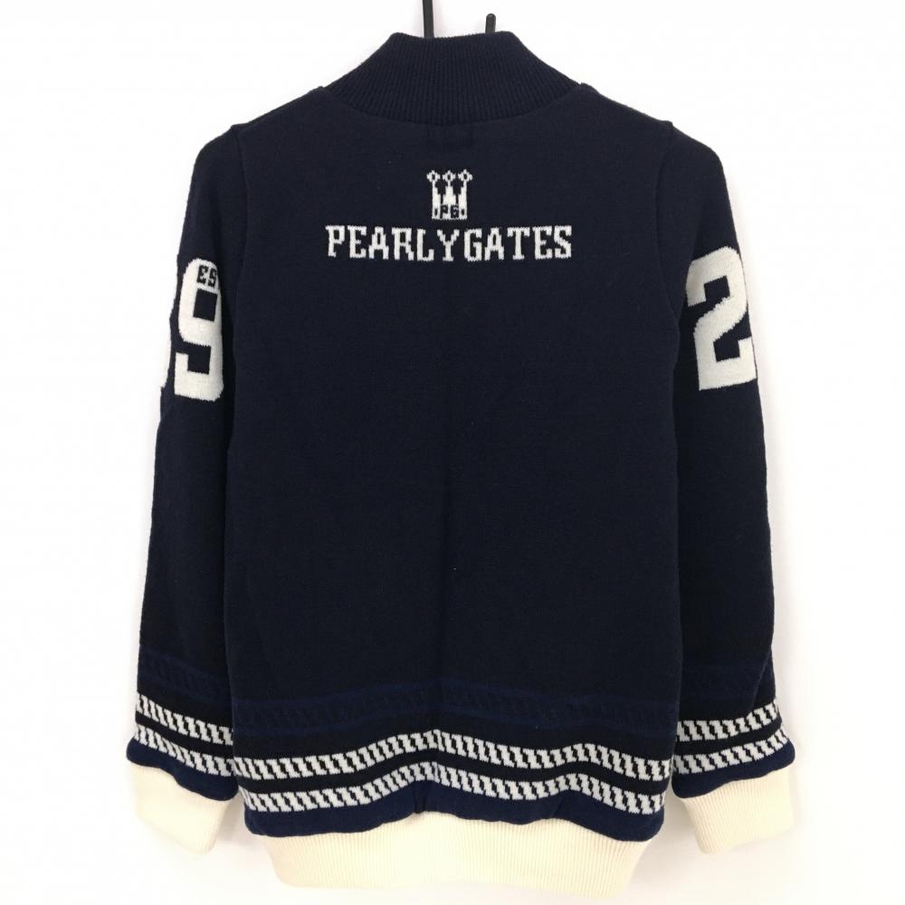 【美品】パーリーゲイツ ニットジャケット ネイビー×白 裏地メッシュ レディース 0(S) ゴルフウェア PEARLY GATES