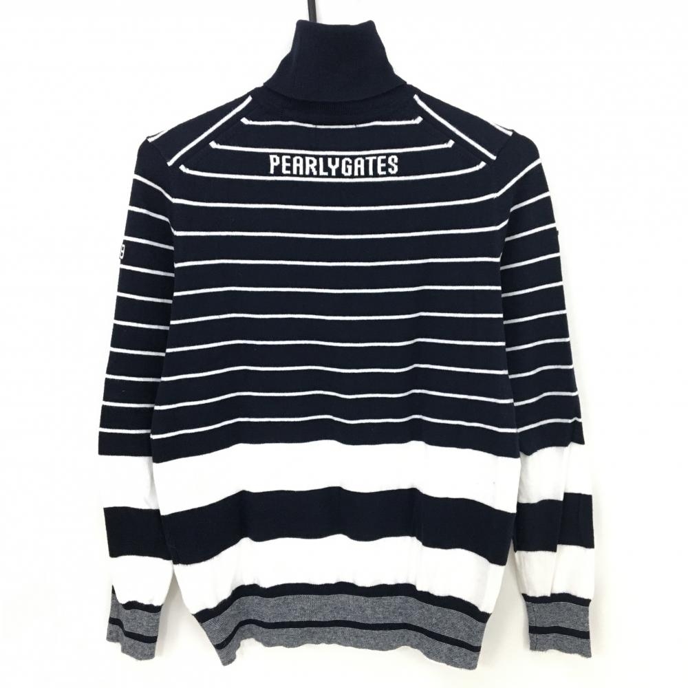 パーリーゲイツ タートルネックセーター ネイビー×白 ボーダー ニット レディース 0(S) ゴルフウェア PEARLY GATES