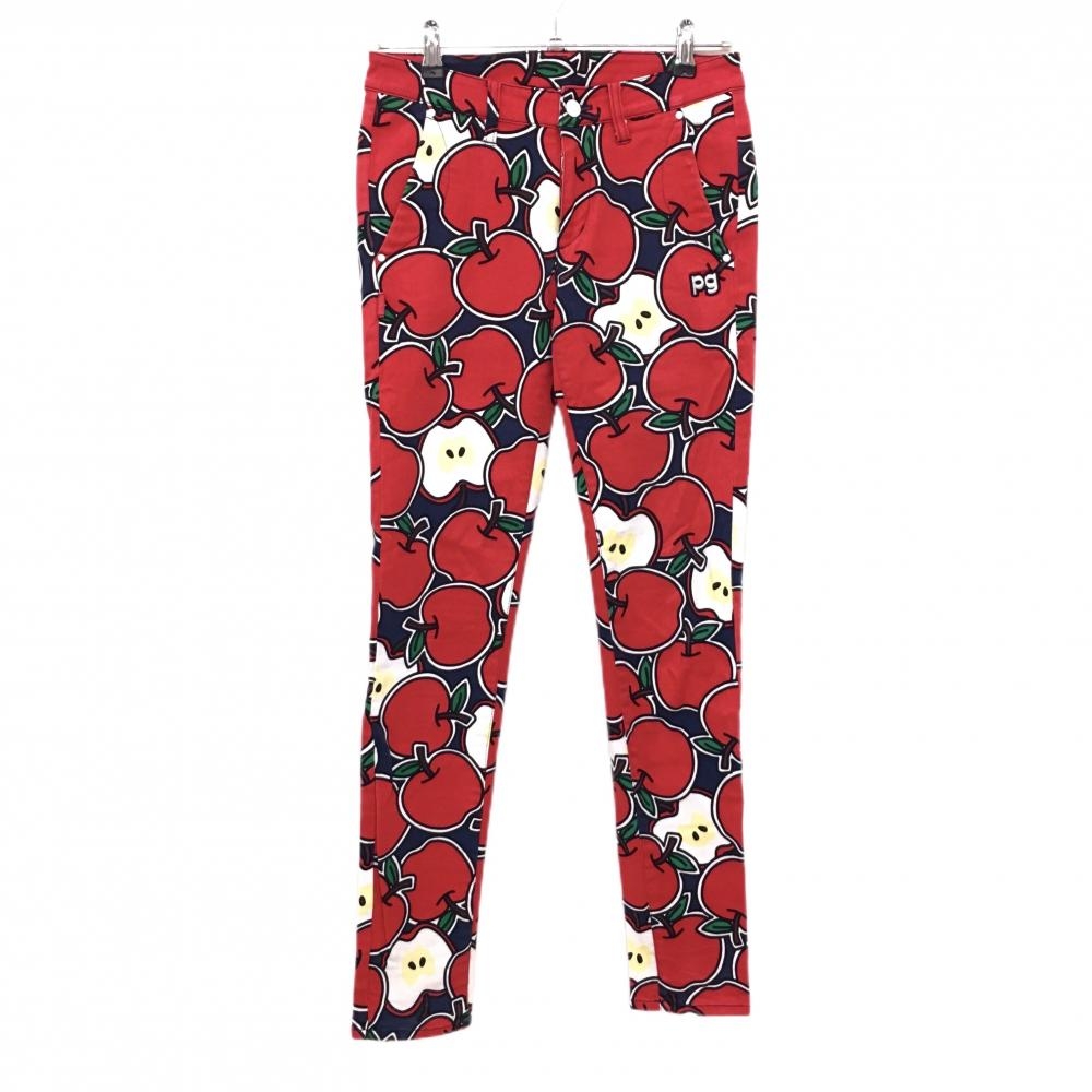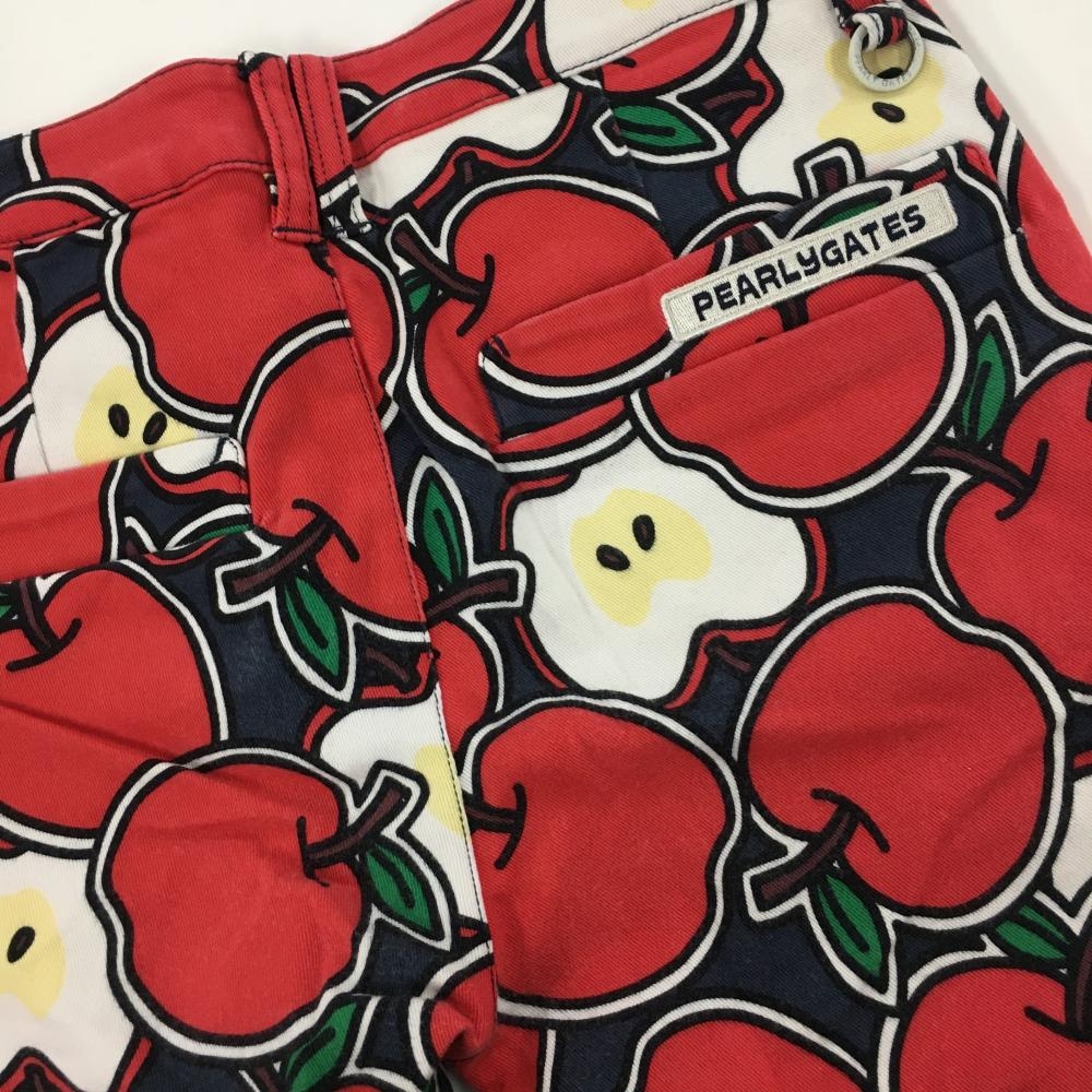 パーリーゲイツ パンツ レッド×ネイビー リンゴ総柄 レディース 0(S) ゴルフウェア PEARLY GATES