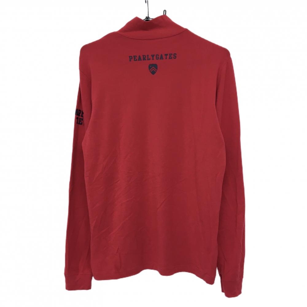 【美品】パーリーゲイツ 長袖ハイネックシャツ レッド 微起毛 ロゴプリント メンズ 5(L) ゴルフウェア PEARLY GATES